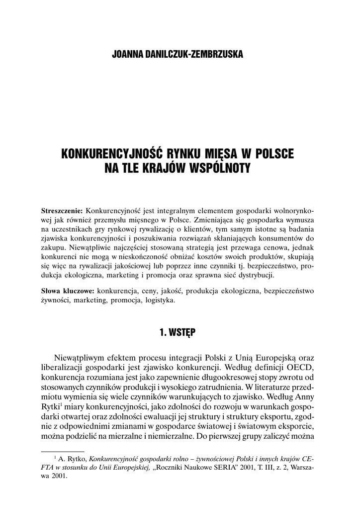 konkurencyjność rynku mięsa w polsce na tle krajów wspólnoty