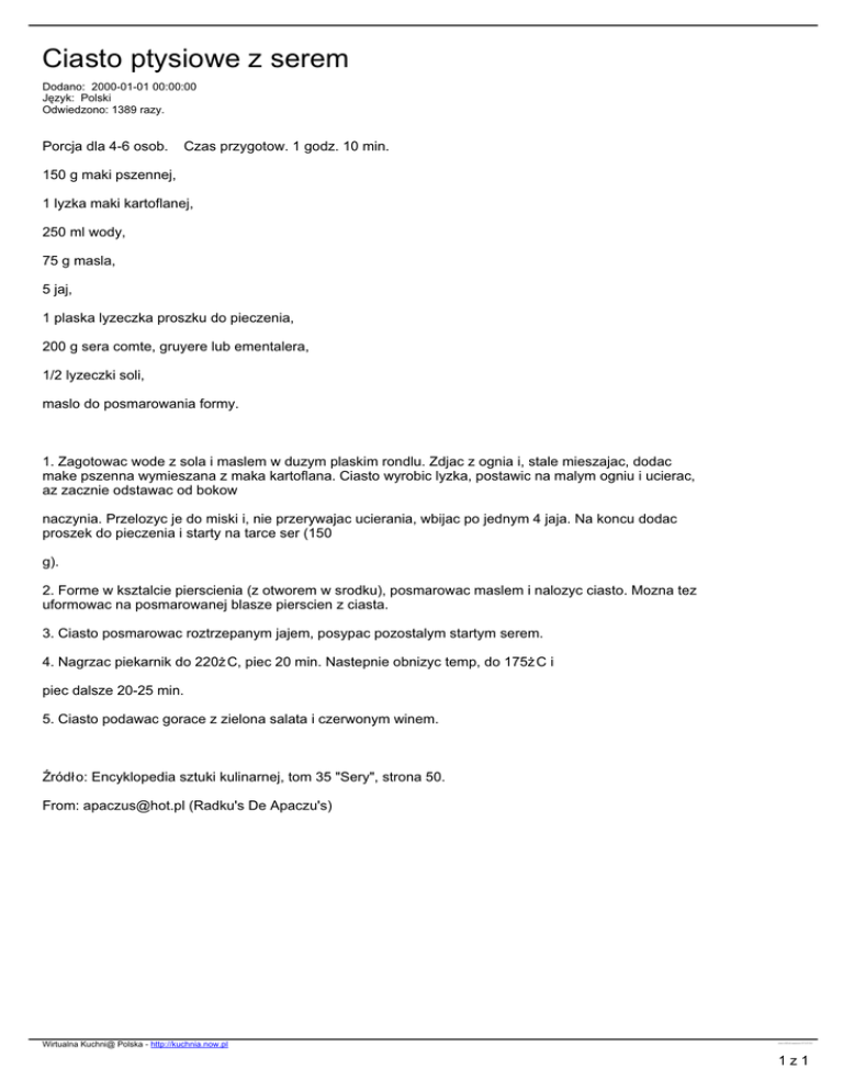 Ciasto ptysiowe z serem - Wirtualna Kuchnia Polska