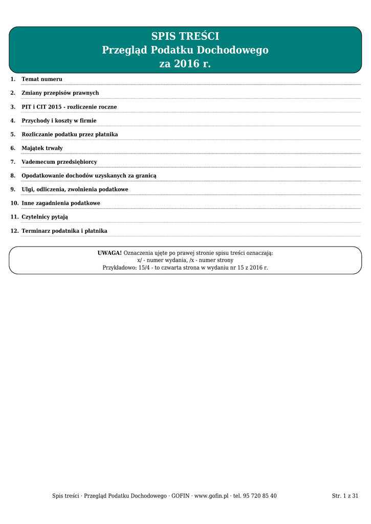 SPIS TREŚCI Przegląd Podatku Dochodowego za 2016 r.