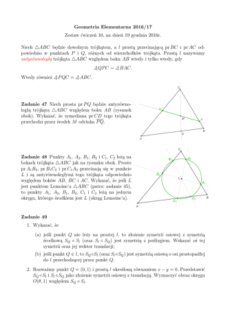 Geometria Elementarna 2016/17 Zestaw ćwiczeń 10, na dzień 19