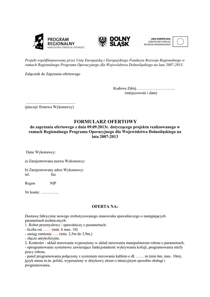 Formularz ofertowy_zrobotyzowane stanowisko spawalnicze +