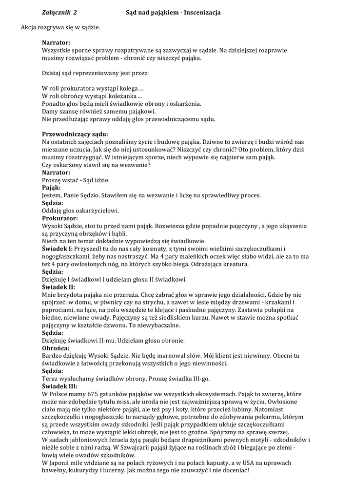 Załącznik 2 Sąd nad pająkiem -‐ Inscenizacja Akcja rozgrywa się w