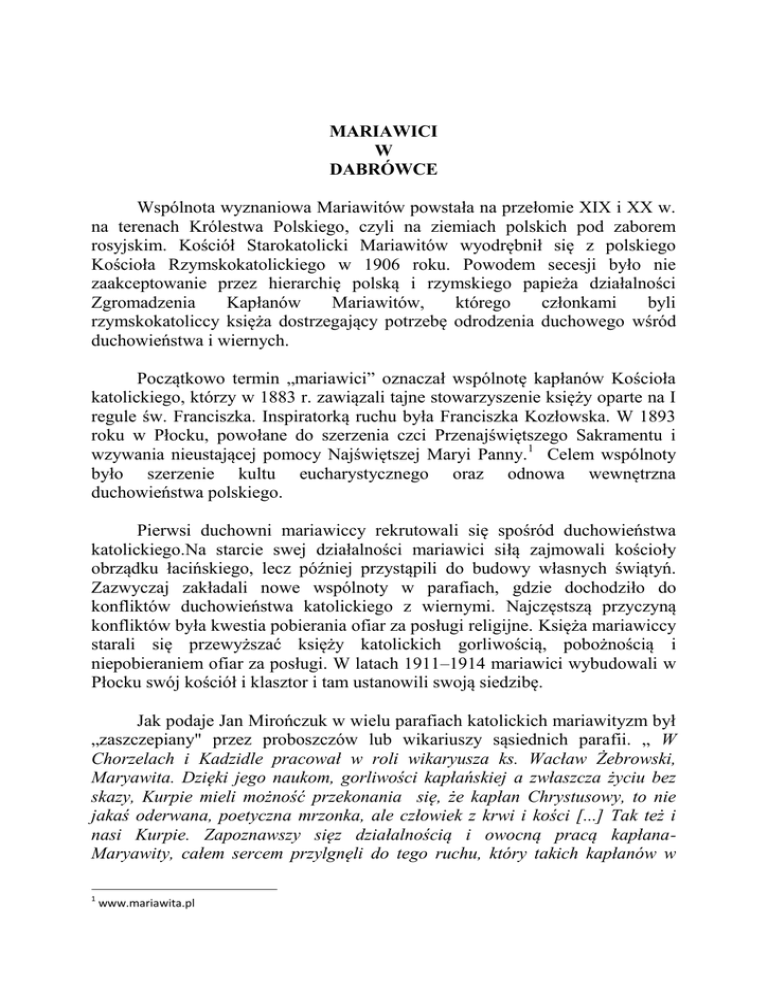 MARIAWICI W DABRÓWCE Wspólnota wyznaniowa Mariawitów