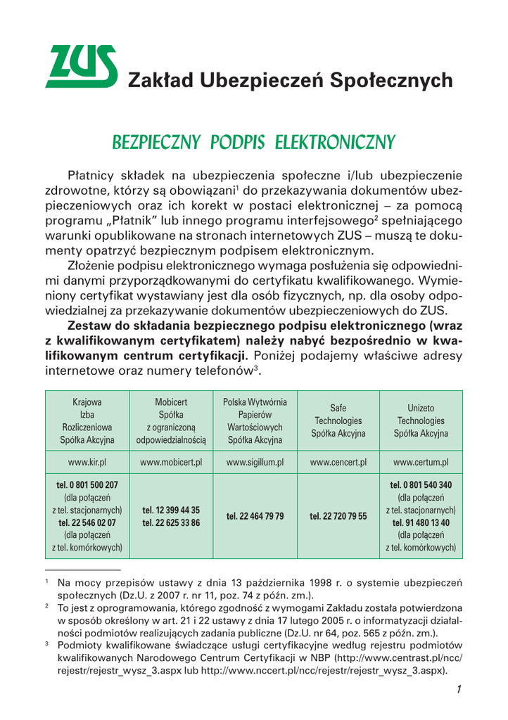 Zakład Ubezpieczeń Społecznych BEZPIECZNY PODPIS
