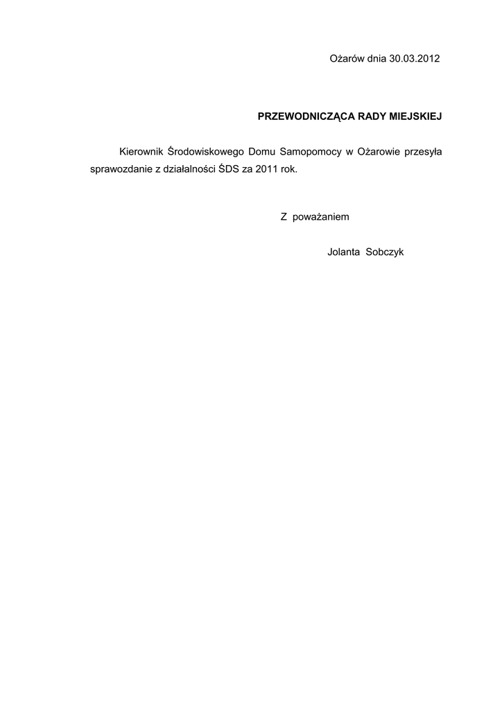 Sprawozdanie z działalności ŚDS w Ożarowie