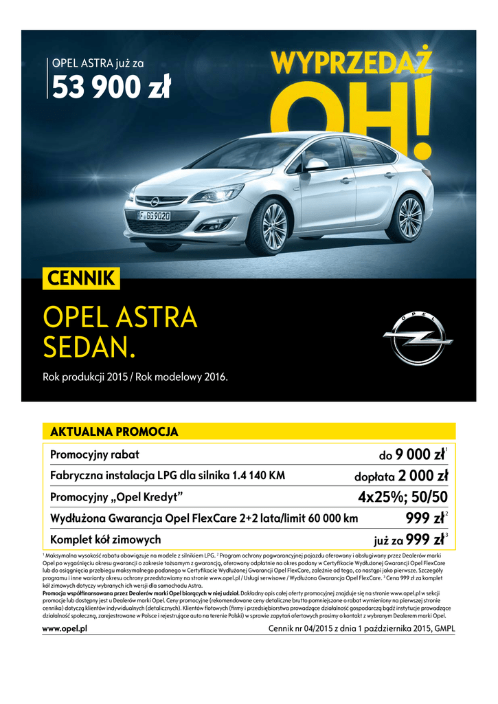 Opel Astra sedan cennik 2015 - Rok modelowy 2016