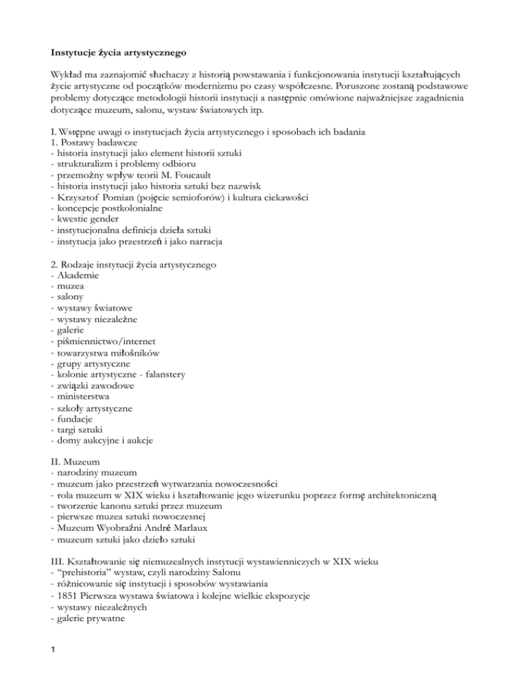 Syllabus Instytucje - Instytut Historii Sztuki UW