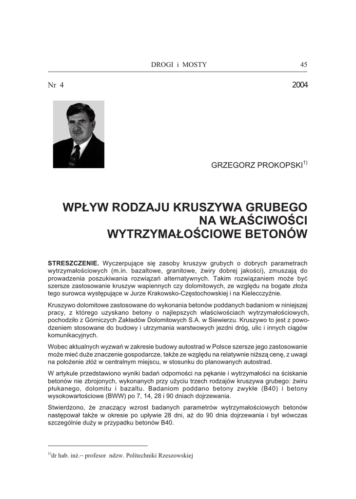 wp£yw rodzaju kruszywa grubego na w£aœciwoœci wytrzyma