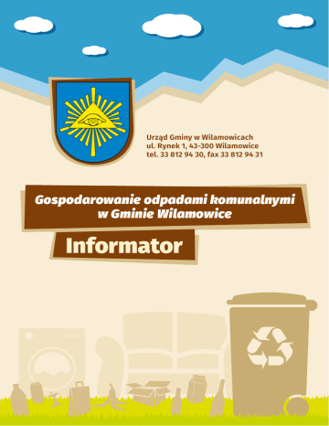 Urząd Gminy w Wilamowicach ul. Rynek 1, 43-300 Wilamowice tel. 33 812 94 30, fax 33 812 94 31 Gospodarowanie odpadami komunalnymi w Gminie Wilamowice Informator Spis treści 1. Rodzaje odpadów odbieranych przez przedsiębiorcę od 1 kwietnia 2016 roku . . . . . . . . . . . . . . 4 2. Wymagania dla pojemników . . . . . . . . . . . . . . . . . . . . . . . . . . . . . . . . . . . . . . . . . 12 3. Zasady odbioru odpadów . . . . . . . . . . . . . . . . . . . . . . . . . . . . . . . . . . . . . . . . . . . 13 4. Rodzaje odpadów przyjmowanych w Punkcie Selektywnej Zbiórki Odpadów Komunalnych (PSZOK) od 1 kwietnia 2016 roku . . . . . . . . . . . . . . . 14 5. Zasady przyjmowania odpadów w Punkcie Selektywnej Zbiórki Odpadów Komunalnych (PSZOK) . . . . . . . . . . . . . . . . . . . . . . . . . . . . . . . . . . . . . 16 6. Terminy uiszczania opłat . . . . . . . . . . . . . . . . . . . . . . . . . . . . . . . . . . . . . . . . . . . . 18 Szanowni mieszkańcy Od 1 kwietnia 2016 r. obowiązywać będą zmiany w odbiorze odpadów komunalnych od właścicieli nieruchomości oraz w przyjmowaniu odpadów przez Punkt Selektywnej Zbiórki Odpadów Komunalnych (PSZOK). Zmodyfikowana częstotliwość odbioru odpadów komunalnych oraz rozszerzony zakres funkcjonowania PSZOK zostały dostosowane do potrzeb i oczekiwań mieszkańców. W niniejszym biuletynie zaktualizowano wszystkie informacje na temat zasad segregacji odpadów i ich odbioru oraz podkreślono wytyczne jakimi należy się kierować przy zakupie pojemnika. Szczególną uwagę zwrócono na sposób klasyfikacji poszczególnych rodzajów odpadów do danej grupy, w tym jakiego rodzaju odpady należy zaliczać do grupy odpadów wielkogabarytowych czy remontowo-budowlanych. Biuletyn zawiera również informację na temat nowych terminów płatności za gospodarowanie odpadami komunalnymi. Rodzaje odpadów odbieranych przez przedsiębiorcę od 1 kwietnia 2016 roku: Niesegregowane (zmieszane) odpady komunalne Popiół Tworzywa sztuczne, metale, opakowania wielomateriałowe Szkło Papier Zużyty sprzęt elektryczny i elektroniczny Wielkogabaryty Uwaga: Od 1 kwietnia 2016 roku odpady zielone będą przyjmowane w Punkcie Selektywnego Zbierania odpadów Komunalnych (PSZOK) – szczegółowe informacje w rozdziale dot. PSZOK. 4 Niesegregowane (zmieszane) odpady komunalne (należy gromadzić w pojemniku) Wrzucamy odpady nienadające się do odzysku lub recyklingu Nie wrzucamy odpadów zielonych odpadów budowlanych, remontowych odpadów podlegających segregacji Częstotliwość odbioru w zabudowie jednorodzinnej – RAZ NA DWA TYGODNIE z bloku przy ul. Jana III Sobieskiego w Wilamowicach – RAZ NA TYDZIEŃ OD IV DO X, – RAZ NA DWA TYGODNIE OD XI DO III Zmieszane 5 Popiół (należy gromadzić w pojemniku) Wrzucamy Nie wrzucamy suchą pozostałość, składającą się z substancji mineralnych, powstałą po spaleniu paliwa stałego w domowym palenisku popiołu mokrego (zalanego wodą) zbieramy luzem, czysty, bez zanieczyszczeń Częstotliwość odbioru DWA RAZY W MIESIĄCU – OD X DO IV RAZ W MIESIĄCU – OD V DO IX Popiół 6 Tworzywa sztuczne, metale, opakowania wielomateriałowe (należy gromadzić w żółtym worku) Wrzucamy puste, odkręcone butelki plastikowe po napojach (np. typu PET) puste opakowania po kosmetykach, chemii gospodarczej i środkach czystości plastikowe opakowania po żywności (np. po jogurtach, serkach, kefirach, margarynach) folie, worki, reklamówki, torebki z tworzyw sztucznych (PP, HDPE, LDPE) kartony po sokach, napojach, mleku (TetraPak) puszki po napojach, konserwach drobny złom żelazny oraz drobny złom metali kolorowych Nie wrzucamy butelek i pojemników z zawartością opakowań po aerozolach opakowań po olejach i smarach, płynach chłodniczych puszek po farbach i lakierach styropianu, tworzyw piankowych, zabawek, sprzętu RTV I AGD Pamiętaj: Zgniataj butelki typu PET Częstotliwość odbioru RAZ W MIESIĄCU Tworzywa i metale 7 Szkło (należy gromadzić w zielonym worku) Wrzucamy Nie wrzucamy butelki i słoiki szklane po napojach i żywności (bez nakrętek, zacisków, gumowych uszczelek) żarówek, świetlówek butelki po napojach alkoholowych szkła zbrojonego, żaroodpornego inne opakowania szklane luster, szyb samochodowych ceramiki, porcelany fajansu, luster zniczy Pamiętaj: Nie tłucz Częstotliwość odbioru RAZ W MIESIĄCU Szkło 8 Papier (należy gromadzić w niebieskim worku) Wrzucamy gazety, książki, katalogi, zeszyty papierowe torby i worki papier szkolny i biurowy kartony i tekturę oraz zrobione z nich opakowania Nie wrzucamy kartonów po sokach, napojach, mleku tłustego, zabrudzonego papieru (np. po maśle, margarynie) tapet odpadów higienicznych (np. pieluch, wacików) Pamiętaj: Usuń wszystkie elementy metalowe i zgniataj Częstotliwość odbioru RAZ W MIESIĄCU Papier 9 Zużyty sprzęt elektryczny i elektroniczny (należy wystawić luzem w dniu odbioru) Zaliczamy Nie zaliczamy urządzenia zasilane prądem lub bateriami, z których już nie korzystamy, chcemy się ich pozbyć lub zastąpić nowymi odpady wielkogabarytowe lodówki, zamrażarki, pralki miksery, tostery, noże elektryczne odkurzacze, żelazka, suszarki, golarki komputery, drukarki, laptopy, kopiarki, kalkulatory, aparaty telefoniczne telewizory, radioodbiorniki, kamery, sprzęt hi-fi, wzmacniacze narzędzia elektryczne i elektroniczne do obróbki drewna i metalu klimatyzatory, wentylatory itp. AGD 10 Częstotliwość odbioru RAZ W ROKU Odpady wielkogabarytowe (należy wystawić luzem w dniu odbioru) Zaliczamy odpady dużych rozmiarów stoły, krzesła, fotele, sofy, tapczany, łóżka, materace, szafy, dywany, chodniki, wykładziny, karnisze, rowery, wózki dziecięce, zabawki dużych rozmiarów, itp. Nie zaliczamy zużyty sprzęt elektryczny i elektroniczny okna, drzwi, parapety, kaloryfery umywalki, wanny, miski ustępowe, brodziki, kabiny sanitarne odpady powstałe w wyniku prac remontowych, budowlanych czy rozb