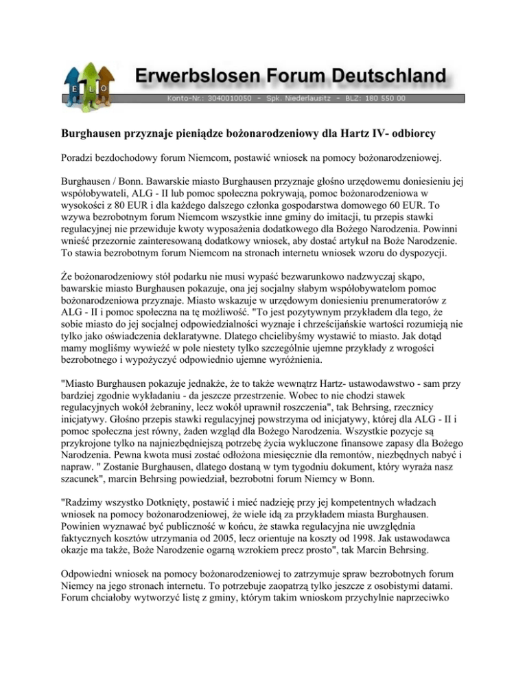 Burghausen przyznaje pieni? - Erwerbslosenforum Deutschland