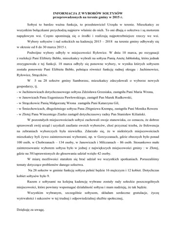 INFORMACJA Z WYBORÓW SOŁTYSÓW przeprowadzonych na