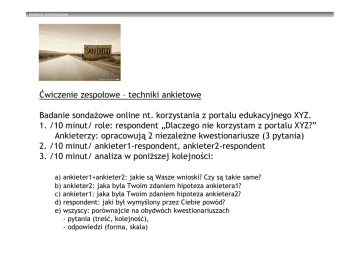 Ćwiczenie zespołowe – techniki ankietowe Badanie