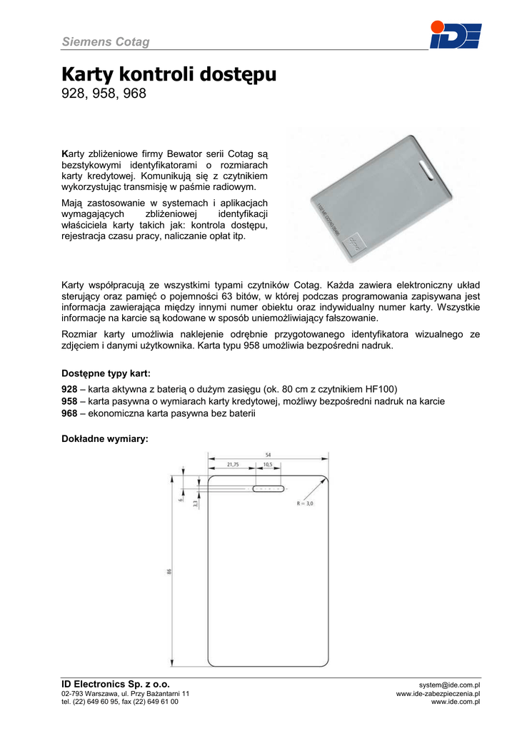 Karty kontroli dostępu - ID Electronics Sp. z oo