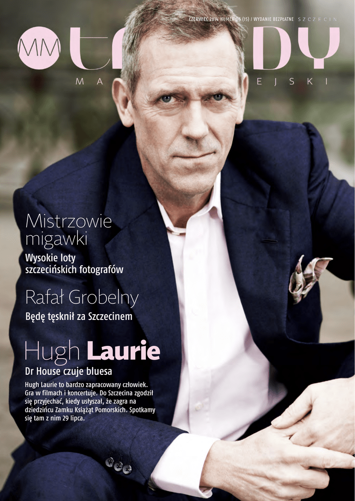 CZERWIEC 2014 NUMER 06 (15) / WYDANIE BEZPŁATNE Mistrzowie migawki Wysokie loty szczecińskich fotografów Rafał Grobelny Będę tęsknił za Szczecinem Hugh Laurie Dr House czuje bluesa Hugh Laurie to bardzo zapracowany człowiek. Gra w filmach i koncertuje. Do Szczecina zgodził się przyjechać, kiedy usłyszał, że zagra na dziedzińcu Zamku Książąt Pomorskich. Spotkamy się tam z nim 29 lipca. 40 Paulina Andrzejewska Kung fu przydaje się w tańcu # 26 Wnętrza 40 / Rozmowa Kolory czterech pór roku # 34 Moto Volkswagen Karmann Ghia # 36 Kulinaria Co widać przez dziurkę od sera # 38 Rozmowa miesiąca Rafał Grobelny # 40 Rozmowa Paulina Andrzejewska 20 / Styl życia # 44 Zdrowie Odżywianie najmłodszych Spis treści 05/ 2014 # 48 Kultura # 06 Newsroom OFF Marina: zagłębie twórców Design, moda, wydarzenia, kultura # 10 Felieton # 50 Kultura Na co wybrać się w czerwcu Paweł Krzych: Wakacje tuż tuż # 54 Sport # 12 Temat z okładki Ludzie biznesu kochają sushi Hugh Laurie # 56 Rozmowa # 18 Showroom Sport i kosmetyki Co słychać u Przemysława CerebieżTarabickiego #20 Styl życia # 57 Trendy towarzyskie Mistrzowie migawki Kto, z kim, gdzie, kiedy i dlaczego #3 MAGAZYN MIEJSKI | NUMER 06/2014 Jarosław Jaz / Redaktor naczelny Nie wiem czy Hugh Laurie poradzi sobie z wymową nazwy miasta, w którym przyjdzie mu zagrać 29 lipca, ale na pewno potraktuje to jak wyzwanie. Bilety na jego koncert były prawdopodobnie najszybciej sprzedającym się towarem w najnowszej historii szczecińskiej rozrywki. Widać chemia zadziałała obustronnie, bo Hugh miał być zachwycony perspektywą koncertu na dziedzińcu Zamku Książąt Pomorskich zaś fani zachwyceni są, że artysta zdecydował się zagrać w Szczecinie. Wspólnych tematów pewnie będzie sporo, bo śpiewający aktor ceni sobie polską wódkę i zapewne niejedno ma w jej sprawie do powiedzenia. Podobnie jak i szczecińska publiczność, której na zamkowym dziedzińcu tego wieczora będzie bez liku. My z kolei mamy kilka tematów dla szczecińskich Czytelników MM Trendy. Przede wszystkim materiał o Hugh Lauire, który z serialowego Dr House’a przeistoczył się w muzycznego frontmana, odwołującego się do bluesowych i jazzowych korzeni muzyki. Na jego show będziemy także rozdawać bilety, które dostępne będą na naszym facebookowym profilu. Te, które mieliśmy na pozostałe koncerty z cyklu Szczecin Music Fest, cieszyły się sporym wzięciem. Polubcie nas na Facebooku, a na pewno łatwiej będzie o bilet na koncert finałowy. Nie chcę w tym miejscu mnożyć truizmów, jacy to utalentowani ludzie mieszkają w Szczecinie, bo to oczywiste. Ale taka sytuacja, że czterech szczecińskich fotografów zdobywa główne nagrody w prestiżowych, ogólnopolskich konkursach, nie zdarza się codziennie. Każdy z nich ma własną historię do opowiedzenia i swoją drogę dochodzenia do perfekcji. Wszyscy są młodzi i najlepsze zdjęcia jeszcze przed nimi, ale sukcesy jakie dotąd odnieśli są godne podziwu. Podobne sukcesy odnosi też choreograf i tancerka Paulina Andrzejewska oraz wokalista Rafał Grobelny. O nich wszystkich piszemy w czerwcowym wydaniu MM Trendy. Zapraszam do lektury. Redakcja/ OKŁADKA: Na zdjęciu Hugh Laurie Foto: Warner Music Poland Redakcja: Nowy Rynek 3, 71-875 Szczecin tel. 91 48 13 341; fax 91 48 13 342 e-mail: [email protected] www.mmszczecin.pl/trendy Redaktor naczelny: Jarosław Jaz Product manager: Ewa Żelazko Promocja i marketing: Magdalena Sosin Redakcja: Maciej Pieczyński, Paulina Targaszewska, Bogna Skarul, Małgorzata Klimczak, Tomasz Kuczyński, Maurycy Brzykcy, Piotr Jasina, Sonia Mrzygłocka / Korekta: Beata Pikutowska / Dział foto: Sebastian Wołosz, Andrzej Szkocki Skład magazynu: Ewa Kaziszko / Re’FORM Studio Dystrybucja: Piotr Grudziecki / Druk: COMgraph Sp. z o.o. Dyrektor Zarządzający: Piotr Grabowski Reklama: tel. 500 324 240, fax 91 48 13 360, [email protected] Wydawnictwo: Media Regionalne sp. z o.o. ul. Domaniewska 45, 02-672 Warszawa Prezes: Dariusz Świąder MAGAZYN MIEJSKI | NUMER 06/2014 #4 Dołącz do nas na www.facebook.com/ MagazynMMTrendy Redakcja nie ponosi odpowiedzialności za treść ogłoszeń. Materiałów, które nie zostały zamówione redakcja nie zwraca. Na podstawie art. 25 ust. 1 pkt 1 b ustawy z dnia 4 lutego 1994 r. o prawie autorskim i prawach pokrewnych Media Regionalne sp. z o.o. zastrzegają, że dalsze rozpowszechnianie materiałów opublikowanych w MM Trendy jest zabronione bez zgody Wydawcy. Newsroom # Czy wiesz... Foto: agemode.com … że na facebookowym fanpage’u MM Trendy rozdajemy książkowe bestsellery, bilety na koncerty i inne upominki dla naszych Czytelników? Wystarczy nas polubić. Zachęcamy! Foto: Amazon Wirtualna moda ze Szczecina Zakupy przyszłości Właśnie skończyły ci się płatki śniadaniowe albo twoje dziecko z lodówki wyjęło ostatni jogurt? Wystarczy powiedzieć albo zeskanować kod z opakowania specjalnym „kluczem przyszłości” i w ten sposób stworzyć listę zakupów. Listę można będzie zweryfikować na platformie dash, która łączy się z macierzystą siecią i działa bezpośrednio z konta AmazonFresh. Potem tylko podajemy termin dostawy i o umówionej godzinie przed domem lub na progu mieszkania zastajemy swoje zakupy. Taka usługa dla szczecinian jest na razie marzeniem, ale mieszkańcy USA mogą już z niej korzystać. Nowy rodzaj zakupów za pomocą „Key Features” wprowadziła firma Amazon. (bs) Agemode.com to nowy i nietypowy portal na rynku modowym. Powstał w Szczecinie i już święci sukcesy. Jego nietypowość polega między innymi na tym, że użytkownicy mają możliwość wirtualnego przymierzania ubrań na wirtualnym modelu. W milionie możliwości pomoże nam E-stylista. To program, dzięki któremu użytkownik może sprawdzić, jak ubrania układają się na sylwetce, ale także jaki ma typ urody i jakie pasują mu kolory i kroje. Po wybraniu odpowiedniej dla siebie 