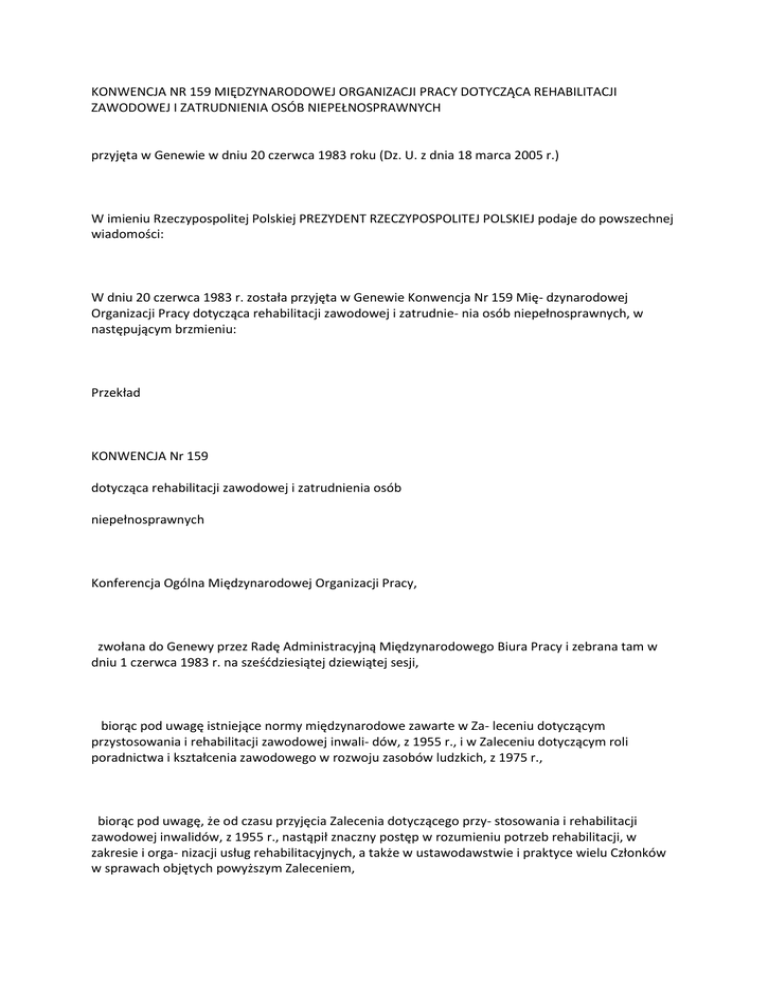 KONWENCJA NR 159 MIĘDZYNARODOWEJ ORGANIZACJI