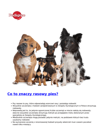 Co to znaczy rasowy pies? Psy rasowe to psy, które odpowiadają wzorcowi rasy i posiadają rodowód. Wszystkie szczenięta z hodowli zarejestrowanych w Związku Kynologicznym w Polsce otrzymują rodowody. Nieprawdą jest to, że jedynie ograniczonej liczbie szczeniąt w miocie należą się rodowody; obecnie wszystkie szczenięta otrzymują metryki po przeglądzie miotu dokonanym przez specjalistę ze Związku Kynologicznego. Młodziutkie szczenięta mogą posiadać jedynie metryki, na podstawie których bez trudu uzyskamy rodowód. Na wymarzone szczenię z renomowanej hodowli przyszły właściciel musi czasem poczekać nawet kilka miesięcy. Zarówno w towarzyskich rozmowach, jak i na rozmaitych stronach internetowych spotykamy się niejednokrotnie z określeniem „pies rasowy”. Czy jednak zawsze nazywane w ten sposób zwierzę spełnia wymagania dotyczące danej rasy? Warto się zastanowić, co tak naprawdę oznacza wyrażenie „rasowy pies”. Z punktu widzenia kynologii pies jest rasowy, jeśli odpowiada wzorcowi rasy, przekazuje swoje cechy potomstwu oraz ma udokumentowane pochodzenie (rodowód). Wzorzec rasy jest opisem cech wyglądu psa (tzn. jego rozmiarów, kształtu głowy, uszu, oczu, tułowia, kończyn, ogona, typu sylwetki, sierści) oraz specyficznych cech charakteru. Informuje on również o przynależności systematycznej i użytkowości psa (psy ratownicze, myśliwskie, pasterskie itd.). Wzorce ras są ustalane przez poszczególne związki kynologiczne, które zrzeszają hodowców psów. Najstarszą i największą organizacją kynologiczną na świecie, zrzeszającą inne związki z poszczególnych krajów, jest Międzynarodowa Federacja Kynologiczna – FCI (Federation Cynologique Internationale). W naszym kraju jedyną organizacją należącą do FCI jest Związek Kynologiczny w Polsce (ZKwP). Jest to także jedyna organizacja, która ma prawo do wydawania w Polsce metryk/rodowodów, organizowania wystaw oraz przyznawania uprawnień hodowlanych i tytułów psom rasowym uznawanych przez FCI. Jak tłumaczy lekarz weterynarii Małgorzata Głowacka: „rodowód jest bardzo ważnym dokumentem psa rasowego zawierającym informacje o przodkach zwierzęcia, ich osiągnięciach, wynikach badań i indywidualnych predyspozycjach. Dzięki rodowodowi i informacjom w nim zawartym mamy praktycznie pewność, że pies, którego wybraliśmy będzie w przyszłości wyglądał tak, jak mówi wzorzec rasy. Rodowód pozwala także na zmniejszenie ryzyka wystąpienia chorób genetycznych i innych wad. W hodowlach prowadzone są badania weterynaryjne w kierunku określonych chorób, także tych, do których dana rasa jest predysponowana (przykładem jest dysplazja stawów biodrowych u owczarków niemieckich), a następnie dokonywana jest selekcja reproduktorów.” Psy, które nie spełniają zawartych we wzorcu warunków i nie mają rodowodów, nie mogą być nazywane rasowymi. O takich zwierzętach można powiedzieć, że są „w typie” danej rasy, np. w typie labradora lub buldoga francuskiego. Mając do czynienia z takimi właśnie czworonogami, nie możemy być pewni, że ze szczenięcia wyrośnie dorosły pies o typowych dla danej rasy cechach wyglądu i charakteru. Istotnym ryzykiem u takich psów jest również wyższe prawdopodobieństwo wystąpienia chorób, które mogą być przekazane przez zazwyczaj nieznanych nam rodziców i dalszych przodków. Jeśli zatem chcesz kupić naprawdę rasowego przyjaciela, wybierz takiego z rodowodem.