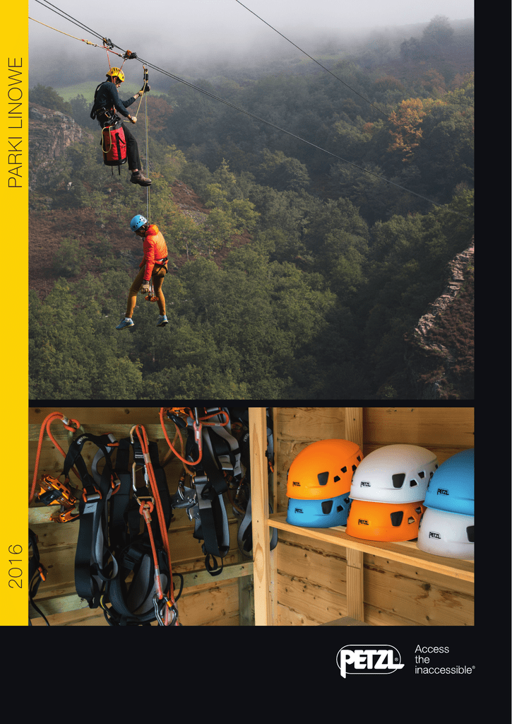 2016 PARKI LINOWE Przygoda z Petzl rozpoczęła się od speleologicznej pasji Fernanda Petzla. Ta pasja zdobywania «niedostępnego» pozwoliła nam w ciągu wielu lat na wymyślanie unikalnych i innowacyjnych rozwiązań, do wychodzenia po linie, zjazdu, przemieszczania się w ciemnościach. Chcemy podzielić się z Wami tym doświadczeniem. W jaki sposób? Będąc przy Was, by umożliwić Waszym klientom pełne przeżycie tej oryginalnej, radosnej i sportowej przygody w parku linowym. Początkiem jest niezawodny i wygodny sprzęt, który jest również opracowany w taki sposób, by ułatwić codzienne funkcjonowanie Waszego parku. Rozwiązania przedstawione w katalogu 2016 są rezultatem takiego podejścia i pracy. Mamy nadzieję, że zasłużą na Wasze zaufanie. Paul Petzl Prezes PANGA® Wytrzymały i łatwy w użyciu kask, przeznaczony do zastosowania zbiorowego. System FLIP&FIT ustawia wewnętrzną opaskę w niskiej pozycji, zapewniając bardzo pewne osadzenie kasku na głowie. System umożliwia również schowanie opaski wewnątrz kasku, by ją chronić podczas przechowywania i transportu oraz pozwala na łatwą regulację przez użytkownika lub instruktora. Am’D PIN-LOCK Asymetryczny karabinek aluminiowy Am’D PIN-LOCK jest przeznaczony do użycia zbiorowego. Zabezpiecza wpięcie użytkownika dzięki systemowi blokowania PIN-LOCK, który można otworzyć tylko przy pomocy specjalnego narzędzia. JAG RESCUE KIT Gotowy zestaw do ratownictwa służący do odczepienia, a następnie opuszczenia ofiary. Spis treści Sprzęt dla uczestników...........2 Sprzęt dla instruktorów............8 Sprzęt do ewakuacji.............12 2 Sprzęt dla uczestników Dorośli NEW 2016 PANGA® Wytrzymały i łatwy w użyciu kask, przeznaczony do zastosowania zbiorowego. Dostępny w zestawach po cztery sztuki PANGA to wytrzymały i łatwy w użyciu kask, przeznaczony do zastosowania zbiorowego. System FLIP&FIT ustawia opaskę obwodu głowy w niskiej pozycji, zapewniając pewne osadzenie kasku na głowie. System umożliwia również schowanie opaski obwodu głowy wewnątrz kasku, by ją chronić podczas przechowywania i transportu oraz pozwala na łatwą regulację przez użytkownika lub instruktora. Kask składa się z trzech elementów, które można wymontować: skorupa zewnętrzna, skorupa wewnętrzna, system nośny. Dostarczany w zestawie czterech sztuk, występuje w trzech kolorach. System FLIP&FIT System umożliwia schowanie opaski obwodu głowy wewnątrz kasku, by ją chronić podczas przechowywania i transportu. Podczas zakładania kasku opaska obwodu głowy znajduje w niskiej pozycji, zapewniając bardzo dobre osadzenie na głowie. VERTIGO WIRE-LOCK Karabinek do lonży Karabinek VERTIGO WIRE-LOCK jest przeznaczony do wpinania na końcach lonży. Ergonomiczny kształt i automatyczny system blokowania WIRE-LOCK ułatwia użytkownikowi manipulacje podczas przepinania się. Szeroki prześwit i system Keylock ułatwia wpinanie w liny stalowe o dużych średnicach. System blokowania WIRE-LOCK zwiększa żywotność produktu przy intensywnym użytkowaniu. JOKO-Y Lonża Lonża JOKO-Y jest przeznaczona do ciągłej asekuracji przy przepinaniu się. Mocowana do uprzęży za pomocą węzła „główka skowronka”. Na końcach lonży znajdują się plastikowe osłony, które utrzymują karabinki w stałym, optymalnym położeniu oraz chronią szwy przed przetarciem. Regulacja opaski obwodu głowy System FLIP&FIT pozwala na łatwą regulację przez użytkownika lub instruktora. TRAC Bloczek do tyrolek Elementy kasku dostępne jako części zamienne Kask składa się z trzech elementów, które można wymontować: skorupy zewnętrznej, skorupy wewnętrznej, systemu nośnego. Te elementy są dostępne jako części zamienne, co umożliwia zwiększenie żywotności produktu i zoptymalizowanie kosztów przez operatora parku. Karabinek VERTIGO zintegrowany z bloczkiem TRAC ułatwia wpinanie i zabezpiecza przed zgubieniem. Plastikowa osłona, którą można zdjąć, ułatwia wpięcie lonży do bloczka. Profilowanie okładek na górnej części bloczka zabezpiecza karabinki przed przetarciem w czasie przejazdu po linie stalowej. TRAC PLUS Bloczek do długich tyrolek Dwurzędowe łożysko kulkowe zwiększa żywotność bloczka TRAC PLUS w porównaniu z bloczkami o zwykłych łożyskach kulkowych. Plastikowa osłona, którą można zdjąć, ułatwia wpięcie lonży do bloczka. Profilowanie okładek na górnej części bloczka zabezpiecza karabinki przed przetarciem w czasie przejazdu po linie stalowej. PANJI Uprząż biodrowa Uprząż biodrowa PANJI zapewnia założenie, regulację i łatwe sprawdzanie przez operatora. Punkt wpinania oraz uchwyt sprzętowy opracowany dla optymalnej współpracy z lonżami JOKO i bloczkami TRAC. Posiada etykietkę informacyjną do zarządzania grupowego produktami. JOKO-I Lonża do bloczka Lonża JOKO-I jest przeznaczona do połączenia bloczka TRAC i uprzęży. Mocowana do uprzęży za pomocą węzła „główka skowronka”. Na końcach lonży znajduje się plastikowa osłona, które utrzymuje karabinek w stałym, optymalnym położeniu oraz chroni szwy przed przetarciem. PARKI LINOWE 4 Sprzęt dla uczestników Dzieci Sprzęt dodatkowy NEW 2016 NEW 2016 NEWTON Kompletna uprząż o dużym rozmiarze PICCHU Uprząż o dużym rozmiarze, z górnymi i dolnymi taśmami różniącymi się kolorami, dla łatwiejszego zakładania. Piersiowa klamra automatyczna FAST pozwala na szybkie i łatwe zapięcie i rozpięcie uprzęży. Taśmy udowe i szelki z klamrami DoubleBack dla łatwej i szybkiej regulacji. Kask dla dzieci Kask PICCHU jest przeznaczony dla dzieci. Bardzo lekki i wygodny, wytrzymała konstrukcja zapewnia bardzo dużą trwałość. NEW 2016 Am’D PIN-LOCK Asymetryczny karabinek aluminiowy, otwierany przy pomocy narzędzia Am’D PIN-LOCK to asymetryczny karabinek aluminiowy przeznaczony do użycia zbiorowego. Zabezpiecza wpięcie użytkownika dzięki systemowi blokowania PI