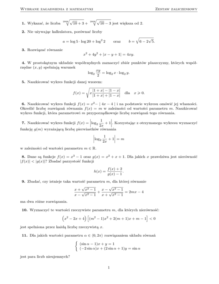 Wybrane zagadnienia z matematyki Zestaw zaliczeniowy 1