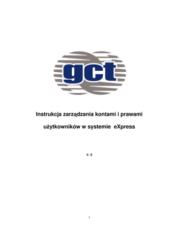 Instrukcja zarządzania kontami i prawami użytkowników w systemie eXpress V. 5 1 SPIS TREŚCI 1. Logowanie do systemu……………………………………………….3 2. Administracja kontami użytkowników……………………………..4 2.1. 2.2. 2.3. 2.4. 2.5. 2.6. 2.7. 2.8. Dodawanie grup użytkowników……………………….……...5 Usuwanie grup użytkowników………………………………..6 Przypisywanie uprawnień grupom użytkowników………….6 Dodawanie kont nowych użytkowników……………………10 Usuwanie kont użytkowników……………………………….11 Zmiana hasła użytkownika…………………………………..11 Zarządzanie aktywnymi sesjami użytkowników …………..12 Uwagi końcowe……………………………………………….12 2 1. Logowanie do systemu. Aby zalogować się do systemu należy podać kod firmy, identyfikator użytkownika oraz jego hasło. Każda z firm posiada konto użytkownika o identyfikatorze admin, z uprawnieniami administratora, umożliwiające zarządzanie kontami innych użytkowników danej firmy. Hasło dostępu do konta (hasło startowe) zostanie podane przez przedstawicieli Działu Informatyki GCT SA. Na stronie logowania istnieje również możliwość wyboru języka interfejsu systemu. Domyślnym językiem programu jest język polski. Po wprowadzeniu danych logowania naciskamy przycisk „GO”. 3 2. Administracja kontami użytkowników. Aby zarządzać kontami użytkowników z menu głównego programu wybieramy opcję „Użytkownicy”. Najważniejsze opcje w menu Użytkownicy to: - Zalogowani użytkownicy (po wybraniu tej opcji mamy możliwość podglądu listy zalogowanych użytkowników firmy) - Zmiana Hasła (możliwość zmiany hasła bieżącego użytkownika) - Profile Użytkowników (zarządzanie kontami użytkowników) - Grupa Użytkowników (zarządzanie grupami użytkowników) - Funkcje Dostępne dla Grup Użytkowników (przydzielanie uprawnień grupom użytkowników) Każda z opcji zostanie szczegółowo opisana w dalszej części instrukcji. 4 2.1. Dodawanie grup użytkowników. Z menu „Użytkownicy” wybieramy opcję „Grupa Użytkowników”. Na ekranie ukaże się lista istniejących grup. Aby dodać nową grupę wybieramy opcję „Tworzenie Grupy Użytkowników”. Na ekranie pojawi się następujący formularz: W pola „Grupa Użytkowników” wpisujemy nazwę grupy, którą chcemy stworzyć (np. forwarder), w polu poniżej wpisujemy opis dla tworzonej grupy (np. spedytor). Po wypełnieniu wymaganych pól zatwierdzamy przyciskiem „Potwierdź”. 5 2.2. Usuwanie grup użytkowników. W celu usunięcia danej grupy, na liście grup zaznaczamy te, które chcemy usunąć i naciskamy „Potwierdź”. Aby móc usunąć daną grupę, nie mogą być do niej przypisani żadni użytkownicy ani uprawnienia. 2.3. Przypisywanie uprawnień grupom użytkowników. Z menu “Użytkownicy” wybieramy opcję “Funkcje Dostępne dla Grup Użytkowników”. 6 Jeżeli dana grupa została dopiero założona lub nie ma przypisanych żadnych uprawnień pojawi się komunikat „20001 – Nie znaleziono pozycji.” Zatwierdzamy przez „OK”. i przechodzimy do edycji uprawnień. Uprawnienia dla danej grupy są zależne od wyboru opcji Gestor. (***) oznaczają operacje na własnej firmie, zaś kody poszczególnych gestorów oznaczają wybór przywilejów powiązanych z konkretnym gestorem. Po wyborze z listy rozwijanej odpowiedniej opcji wciskamy przycisk „Assign”. Jako pierwsze wybieramy (***). 7 Zaznaczamy opcję „Przydziel Wszystkie” (na dole ekranu - rysunek powyżej). Dla użytkowników o uprawnieniach innych niż Administrator odznaczamy część funkcji, podobnie jak na powyższym obrazku. Zmiany zatwierdzamy przyciskiem „Potwierdź”. 8 Uprawnienia COMPANY LOGIN SESSION – ADMIN oraz COMPANY LOGIN SESSION – LIST odpowiadają za wyświetlenie i zarządzanie aktywnymi połączeniami użytkowników firmy. Uprawnienie CONTAINER DETAIL ENQIURY odpowiada za dostęp do karty kontenera. Jeśli użytkownik nie będzie posiadał tego uprawnienia dostęp do karty kontenera będzie niemożliwy. Wybierając z listy rozwijanej opcję „All Owners” uzyskamy komunikat 20001 – Nie znaleziono pozycji. Oznacza to, że nie ma żadnych uprawnień powiązanych z istniejącymi kodami gestorów. Funkcja „All Owners” zastępuje konieczność wyboru każdego gestora z listy. W przypadku przydzielenia uprawnienia poprzez wybór „All Owners” system dodaje je dla wszystkich pozycji z listy rozwijanej. Wprowadzone zmiany powinny być widoczne w oknie wyboru grupy i gestora. Jeśli chcemy usunąć daną grupę użytkowników, w menu „Funkcje Dostępne dla Grup Użytkowników” wybieramy z listy interesująca nas grupę użytkowników (pole Grupa Użytkowników). Na dole ekranu wybieramy opcję „Usuń Wszystkie” i wciskamy „Potwierdź”. Procedurę wykonujemy zarówno dla opcji (***) jak również dla Opcji All Owners, jeśli są uprawnienia, które są powiązane z kodami gestorów. 9 2.4. Dodawanie kont nowych użytkowników. Z menu „Użytkownicy” wybieramy opcję „Profile Użytkowników”. Na ekranie pojawi się lista istniejących kont użytkowników. By dodać kolejne klikamy „Tworzenie Użytkownika”. Wypełniamy wszystkie pola (pola ID użytkownika oraz hasło są obowiązkowe), wybieramy grupę do której ma należeć użytkownik (górny prawy róg formularza). Zatwierdzamy przyciskiem „Potwierdź”. 10 2.5. Usuwanie kont użytkowników. Aby wyszukać wszystkich dostępnych użytkowników z menu głównego wybieramy opcje „Użytkownicy” a następnie „Profile Użytkowników”. Po wciśnięciu przycisku „Search” system wyświetli listę wszystkich dostępnych użytkowników firmy. W celu usunięcia danego użytkownika na liście użytkowników w kolumnie Usuń zaznaczamy go i naciskamy „Potwierdź”. 2.6. Zmiana hasła użytkow