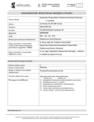 zgłoszenie wolnego miejsca stażu