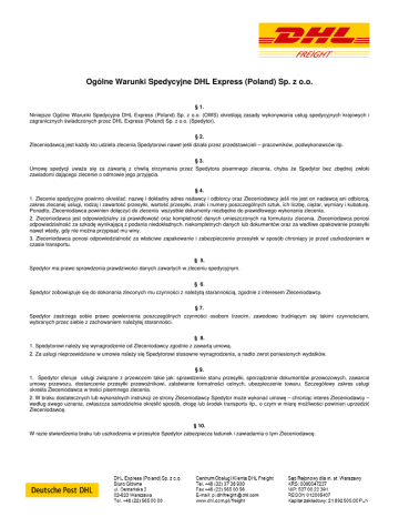 Ogólne Warunki Spedycyjne DHL Express (Poland) Sp. z o.o.