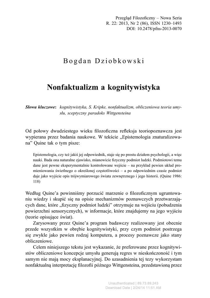 Nonfaktualizm a kognitywistyka - Przegląd Filozoficzny. Nowa Seria