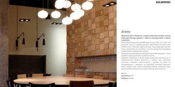 BUCK.ARCHITEKCI dinette Współczesne bistro z charakterem i przyjazną nieformalną atmosferą, w którym widać pasję twórczego gotowania i radość ze smacznego posiłku w dobrym towarzystwie. Projekt zakładał opracowanie kompleksowego konceptu bistro ‘na co dzień’ czyli przyjaznego miejsca ze swobodną atmosferą, odpowiedniego na poranną kawę, codzienny lunch i nieformalne spotkanie po pracy. Istotą projektu było stworzenie miejsca uniwersalnego ale z charakterem, a przy tym pełnego życia, sprzyjającego wizytom zarówno w pojedynkę, jak i w grupie. Opracowany koncept projektowy został oparty na idei nieformalnej jadalni - miejsca wspólnych codziennych posiłków i ożywionych rozmów. Inspirowany wzornictwem lat 50-tych projekt wnętrza bistro koncentruje się na charakterystycznych detalach utrzymanych w stylistyce retro, szlachetnych naturalnych materiałach wykończeniowych i typowych dla jadalni ale zreinterpretowanych i wykonanych na indywidualne zamówienie elementach: dużym wspólnym stole, solidnym drewnianym kredensie, marmurowej wyspie kuchennej pełniącej funkcję baru oraz dobrze widocznej, półotwartej kuchni. rok: 2012 powierzchnia: 80 m² lokalizacja: Wrocław 1/5 1/6 2/6 3/6 3/5 4/6 5/6 INFORMACJE O PROJEKCIE obiekt: dinette adres: Skytower, ul. Powstańców Śląskich 95, Wrocław klient: Food Concept metraż: 80 m² rok: 2012 czas przygotowania projektu: 16 tygodni czas realizacji: 8 tygodni zakres: koncept miejsca, projekt wnętrz, projekt technologiczny kuchni, projekt wykonawczy, koordynacja branżowa, nazwa, system identyfikacji wizualnej: logotyp, karty menu, karty przepisów, pocztówki, etykiety, wizytówki, odzież, szyldy WIODĄCE MATERIAŁY drewno / sklejka / marmur / mozaika dębowa / glazura WYPOSAŻENIE kredens - wg projektu B.A panele obrotowe - wg projektu B.A duży wspólny stół - wg projektu B.A stoliki - wg projektu B.A kanapy - wg projektu B.A krzesła - vintage lampy ‘kule’ - wg projektu B.A kinkiety - wg projektu B.A halogeny - chors PRESS W celu uzyskania dalszych informacji o projekcie oraz zdjęć w odpowiedniej rozdzielczości prosimy o kontakt na [email protected]. 6/6 B.A BUCK.ARCHITEKCI to założona w 2008 roku przez architektów Dominikę Buck i Pawła Buck pracownia projektowa zajmująca się programowaniem przestrzennym, funkcjonalnym i wizualnym przedsięwzięć prywatnych oraz komercyjnych w Polsce i zagranicą. Pracujemy definiując indywidualny, dedykowany konkretnemu projektowi, zbiór zasad, charakterystycznych cech, emocji i rozwiązań. Nasze projekty – niezależnie od skali oraz budżetu – wyróżnia czytelny i nośny koncept organizujący zarówno proces projektowania, jak i finalny efekt. BUCK.ARCHITEKCI ul. Sępia 26 | 53-143 Wrocław tel. 501 15 35 35 tel. | fax 71 343 14 33 pracownia: offi[email protected] press: [email protected] www.buck.pl