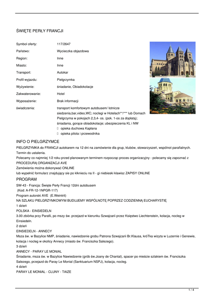 SW-43 - Francja: Święte Perły Francji 12dni autobusem
