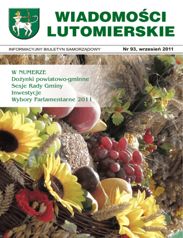 WIADOMOŚCI LUTOMIERSKIE INFORMACYJNY BIULETYN SAMORZĄDOWY W numerze Dożynki powiatowo-gminne Sesje Rady Gminy Inwestycje Wybory Parlamentarne 2011 Nr 93, wrzesień 2011 INFORMACYJNY BIULETYN SAMORZĄDOWY Strona 2 WIADOMOŚCI LUTOMIERSKIE wrzesień 2011 Sesja absolutoryjna 27 czerwca 2011 r. odbyła się X sesja Rady Gminy Lutomiersk, podczas której radni udzielili Wójtowi Gminy absolutorium z wykonania budżetu Gminy Lutomiersk za 2010 rok. Należy zaznaczyć, że jest to jedna z ważniejszych sesji w roku. Obrady rozpoczęły się jednak od podjęcia uchwały, która dotyczyła wyrażenia zgody na przystąpienie Gminy Lutomiersk do Fundacji Rozwoju Gmin „PRYM”. W sesji udział wzięła Pani Jolanta Pęgowska – Prezes Fundacji, która przedstawiła zakres jej działalności. Poinformowała, że Lokalna Grupa Działania powstała pięć lat temu, a w jej skład wchodzą obecnie gminy: Dalików, Łęczyca, Parzęczew, Wartkowice, Zgierz i Aleksandrów Łódzki. Temat związany z działalnością fundacji ożywił dyskusję wśród uczestników sesji. Na liczne pytania odpowiedzi udzieliła Pani Prezes. Radni gminni jednogłośnie wyrazili zgodę na przystąpienie Gminy Lutomiersk do w/w Lokalnej Grupy Działania. Kolejny punkt obrad dotyczył udzielenia Wójtowi absolutorium. W imieniu Wójta szczegółowe sprawozdanie z wykonania budżetu Gminy Lutomiersk za rok 2010, omówiła Pani Ewa Duszyńska – Skarbnik Gminy. Sprawozdanie z realizacji budżetu było również przedmiotem obrad wszystkich stałych Komisji Rady. Pani Skarbnik zaznaczyła, iż zgodnie z nowymi zasadami wynikającymi z ustawy z dnia 27 sierpnia 2009r. o finansach publicznych - Wójt Gminy przedkłada Radzie Gminy do rozpatrzenia sprawozdanie finansowe za rok 2010, na które składa się: bilans z wykonania budżetu gminy, łączny bilans obejmujący dane wynikające z bilansów samorządowych jednostek budżetowych, łączny rachunek zysków i strat obejmujący dane wynikające z rachunków zysków i strat samorządowych jednostek budżetowych, łączne zestawienie zmian w funduszu obejmujące dane wynikające z zestawień zmian w funduszu samorządowych jednostek budżetowych. Wójt Gminy przedkłada radnym oprócz sprawozdania z realizacji budżetu także sprawozdanie roczne z wykonania planu finansowego samorządowej instytucji kultury – Gminnego Ośrodka Kultury w Lutomiersku za rok 2010. Po rozpatrzeniu sprawozdania wójta gminy z realizacji budżetu gminy za rok 2010 wiceprzewodnicząca Rady Gminy – Pani Leokadia Bujnowicz odczytała uchwałę Składu Orzekającego Regionalnej Izby Obrachunkowej. Następnie Pani Skarbnik omówiła informację o stanie mienia gminy. Przewodniczący stałych komisji przedstawili opinie nt. sprawozdania Wójta Gminy z realizacji budżetu za rok 2010 łącznie z wnioskiem Komisji Rewizyjnej o udzielenie absolutorium Wójtowi Gminy Lutomiersk z wykonania budżetu za rok 2010. Przewodniczący Rady Gminy odczytał uchwałę Składu Orzekającego Regionalnej Izby Obrachunkowej w Łodzi w sprawie wniosku Komisji Rewizyjnej. W wyniku głosowania radni większością głosów udzielili Wójtowi Gminy absolutorium z wykonania budżetu za rok 2010. Pan Wójt wyraził podziękowanie za udzielone absolutorium. Podkreślił, że jest to wynik dobrej współpracy z Radą Gminy, Skarbnikiem, Sekretarzem, pracownikami Urzędu, sołtysami oraz z mieszkańcami Gminy Lutomiersk. W kolejnej uchwale radni wprowadzili zmianę w budżecie gminy na 2011 rok, a w następnej ustalili zakres i formę informacji o przebiegu wykonania budżetu gminy za I półrocze 2011 roku, zakresu i formy informacji o kształtowaniu się Wieloletniej Prognozy Finansowej, w tym o przebiegu realizacji przedsięwzięć oraz informacji o przebiegu wykonania planu finansowego gminnej instytucji kultury za I półrocze. W uchwale Nr LVII/400/10 Rady Gminy Lutomiersk z dnia 9 listopada 2010 r. w sprawie zwolnień w podatkach lokalnych: od nierucho- mości i od środków transportowych poprzez skreślenie w § 1 pkt. 2, czyli „likwidację” zwolnienia podatku od nieruchomości od budynków mieszkalnych wykorzystywanych w związku z prowadzeniem gospodarstwa rolnego lub działalności rolniczej polegającej na produkcji roślinnej i zwierzęcej, w tym również produkcję materiału siewnego, szkółkarskiego, hodowlanego oraz reprodukcyjnego, produkcję warzywniczą, roślin ozdobnych, grzybów uprawnych, sadownictwa, hodowlę i produkcję materiału zarodowego zwierząt, ptactwa i owadów użytkowych, produkcję zwierzęcą typu przemysłowego fermowego oraz chów i hodowlę ryb. Zmiana będzie obowiązywać od 1 stycznia 2012 r. W kolejnych pięciu uchwałach radni wprowadzili zmiany w miejscowych planach zagospodarowania przestrzennego dla obszarów położonych w obrębach geodezyjnych: Babice, Babiczki, Dziektarzew, Mikołajewic i Wygoda Mikołajewska, Prusinowice i Zalew, Kazimierz, Wrząca w Gminie Lutomiersk. Obszary objęte zmianą planu miejscowego graniczą z terenami wskazanymi w Studium uwarunkowań i kierunków zagospodarowania przestrzennego Gminy Lutomiersk jako tereny lasów i zadrzewień, dla których w tekście Studium zawarty jest zakaz lokalizacji budownictwa i ogrodzeń bliżej niż 30 – od granicy lasu. W związku ze zmianą ustawy o planowaniu i zagospodarowaniu przestrzennym zaistniała możliwość zmiany zapisów dotyczących odległości lokalizacji nowej zabudowy i ogrodzeń od granicy lasu z minimum na odległość zgodną z przepisami odrębnymi – 12 m. Zmiana poparta jest potrzebami mieszkańców, wyrażanymi w licznych wnioskach i uwagach. Zgodnie z obowiązującą ustawą o planowaniu i zagospodarowaniu przestrzennym zakres zmiany planu miejscowego nie wymaga dokonania zmiany Studium uwarunkowań i kierunków zagospodarowania przestrzennego Gminy Lutomiersk. W następnym punkcie porządku obrad radni nie uwzględnili wezwania do usunięcia naruszenia prawa. Podczas sesji powo