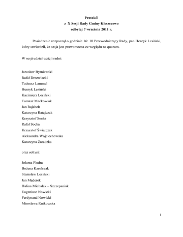 Protokół z X Sesji Rady Gminy Kleszczewo odbytej 7 września 2011