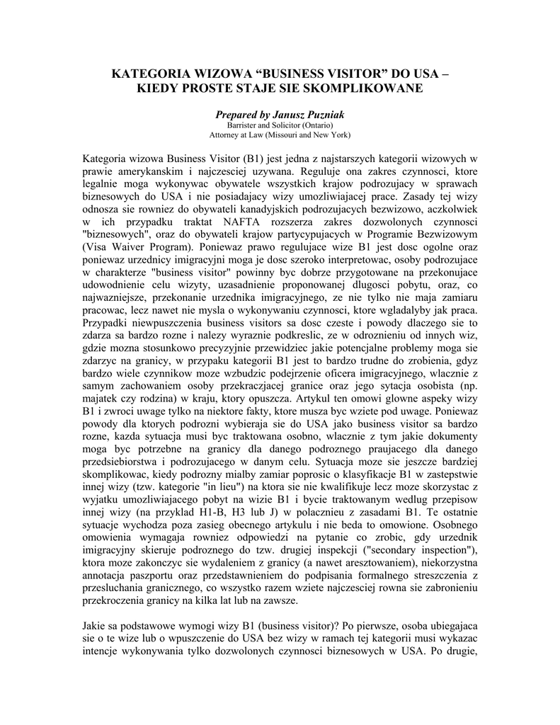 (Visa Waiver Program). Poniewaz prawo regulujace wize B1 jest dosc ogolne oraz