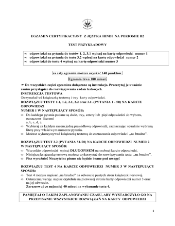 EGZAMIN CERTYFIKACYJNY Z JĘZYKA HINDI NA POZIOMIE B2