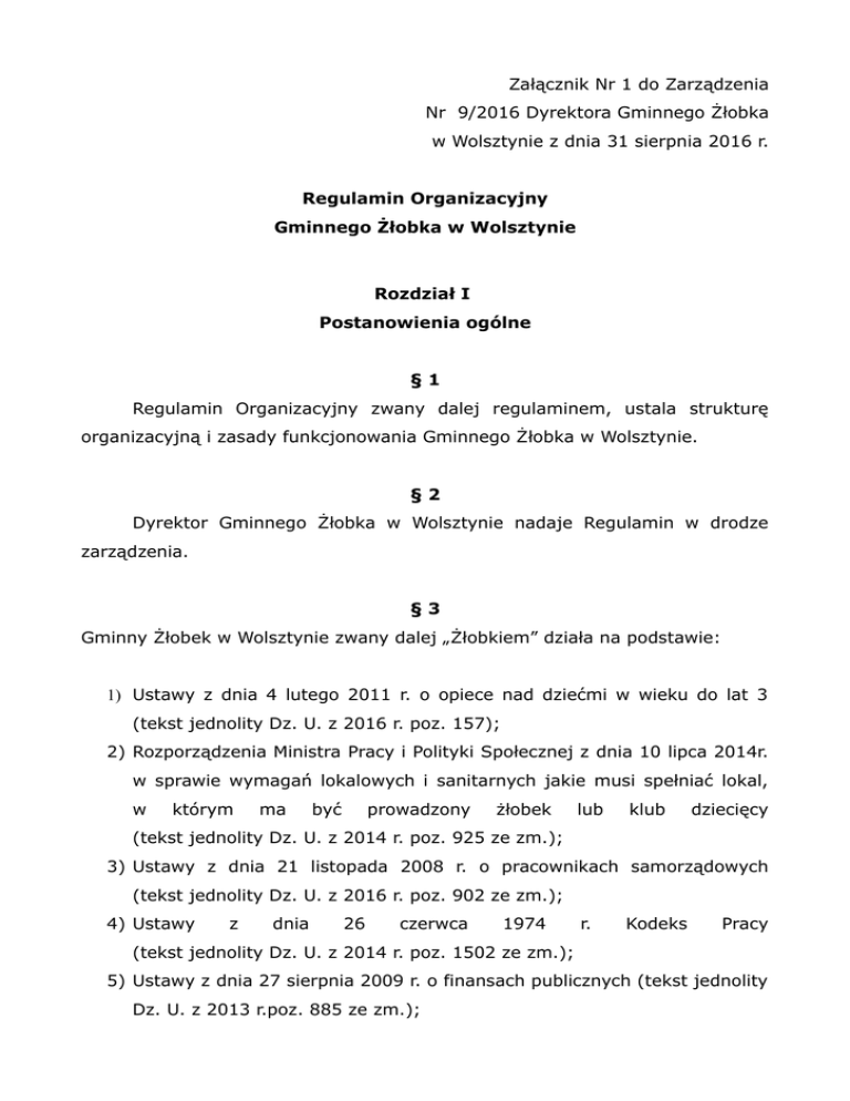 organizacyjną i zasady funkcjonowania Gminnego Żłobka w Wolsztynie.