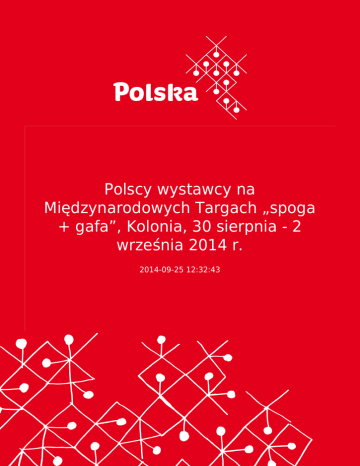 Polscy wystawcy na Międzynarodowych Targach „spoga + gafa”, Kolonia, 30 sierpnia - 2 września 2014 r. 2014-09-25 12:32:43 2 W dniach od 31 sierpnia do 2 września br. odbyło się w Kolonii kolejne spotkanie najważniejszych decydentów i opiniotwórców zielonej branży. Targi „spoga+gafa“ uchodzą za wiodącą na świecie imprezę wystawienniczą dla całego sektora ogrodniczego, odbywają się co dwa lata i bierze w nich udział ponad 1500 wystawców z 56 krajów. Polscy wystawcy na Międzynarodowych Targach „spoga + gafa”, Kolonia, 30 sierpnia - 2 września 2014 r. W dniach od 31 sierpnia do 2 września br. odbyło się w Kolonii kolejne spotkanie najważniejszych decydentów i opiniotwórców zielonej branży. Targi „spoga+gafa“ uchodzą za wiodącą na świecie imprezę wystawienniczą dla całego sektora ogrodniczego, odbywają się co dwa lata i bierze w nich udział ponad 1500 wystawców z 56 krajów. Targi mają wyłącznie charakter B2B, bez udziału prywatnych konsumentów. Uczestnictwo w targach stanowi wyjątkową okazję do zawarcia znaczących kontaktów biznesowych oraz zapoznania się ze wszystkimi nowinkami ze świata ogrodnictwa. Polscy wystawcy należą do stałych bywalców targów. Podczas ostatniej edycji „spoga+gafa" aż 31 polskich firm zaprezentowało miłośnikom ogrodnictwa swoje najnowsze rozwiązania dla domu i ogrodu. Prawie 37 tys. zwiedzających tegoroczne targi mogło zobaczyć m.in.: domki i altany ogrodowe, meble ogrodowe drewniane i plastikowe (stoły, krzesła) oraz z masywnego drewna (ławy, stoły, skrzynie), donice i skrzynki na kwiaty, kosze, sprzęt i narzędzia ogrodnicze, szczotki dla gospodarstw domowych i hal przemysłowych, miotły, pędzle, leżaki reklamowe, sanki, pudełka, ogrodzenia i kosze z wikliny, poduszki i materace na leżaki, drewniane i wiklinowe ogrodzenia ogrodów, kominki z bezdymnym ogniem do domów i ogrodów, huśtawki, dekoracje ogrodowe i drewniane meble do ogródków restauracyjnych, elementy wyposażenia wnętrz, tekstylia, campingi, elementy dekoracyjne, sprzęt do grillowania, sprzęt do domowej produkcji wina i nalewek, tunele ogrodnicze a także urządzenia do pielęgnacji ogrodu. Wśród innowacyjnych targowych nowości znalazły się: huśtający się domek do grillowania, ścianki magnetyczne do kwiatów oraz nadmuchiwane fotele ogrodowe. Przedstawiciele WPHI Kolonia odwiedzili stoiska polskich wystawców, informując o bieżących projektach Wydziału, instrumentach wsparcia ze strony Ministerstwa Gospodarki oraz możliwościach współpracy z WPHI w Kolonii. Listę polskich wystawców wraz z profilem działalności znajdą Państwo pod: http://www.spogagafa.de/de/spogagafa/ausstellersuche/suche/suche.php?fw_goto=aussteller&stichwort=Polen Źródło: Wydział Promocji Handlu i Inwestycji Konsulatu Generalnego RP w Kolonii 3