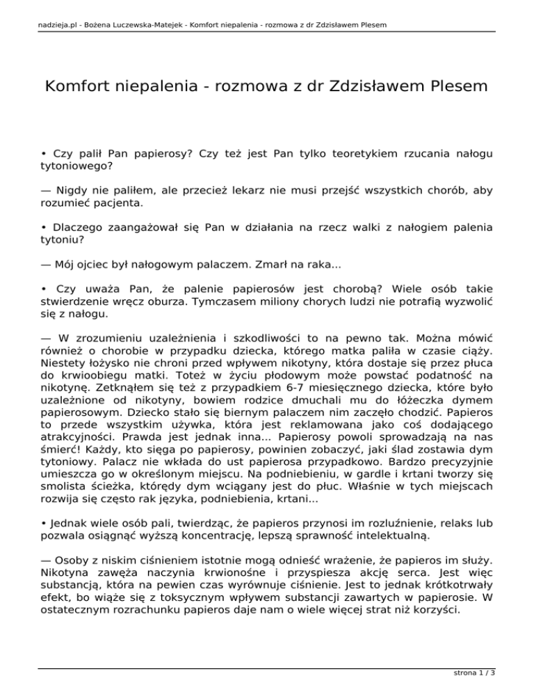 Komfort niepalenia - rozmowa z dr Zdzisławem Plesem