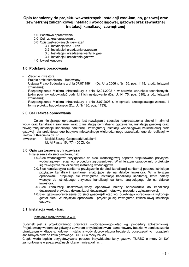 1 - Opis techniczny do projektu wewnętrznych instalacji wod