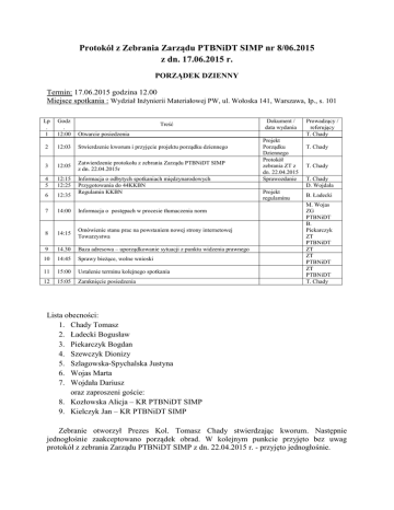Protokół z Zebrania Zarządu PTBNiDT SIMP nr 8/06.2015 z dn
