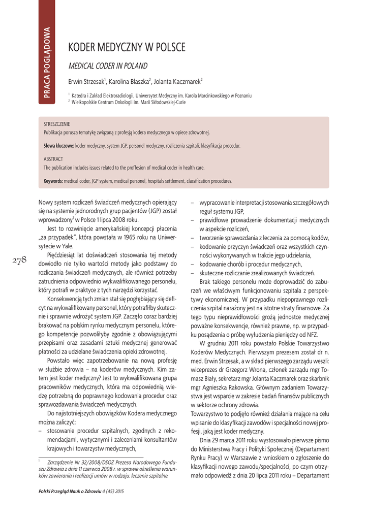 koder medyczny w polsce - Polski Przegląd Nauk o Zdrowiu