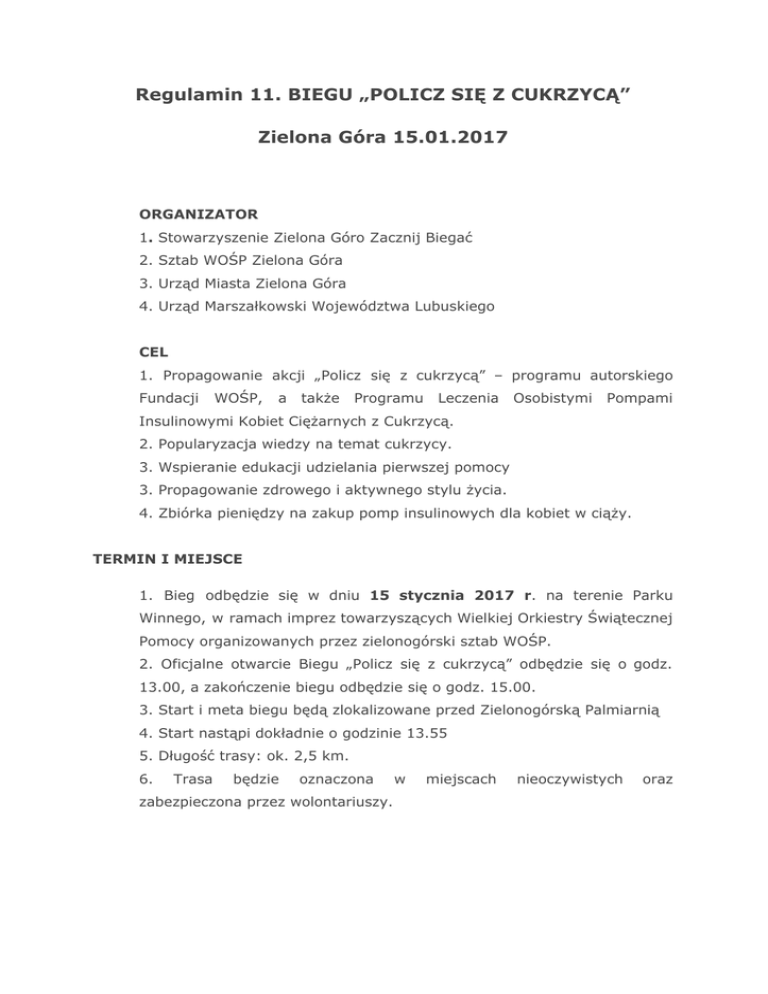 Regulamin 11. BIEGU „POLICZ SIĘ Z CUKRZYCĄ” Zielona Góra