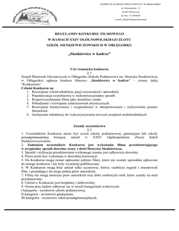 REGULAMIN konkursu filmowego - Zespół Placówek Oświatowych