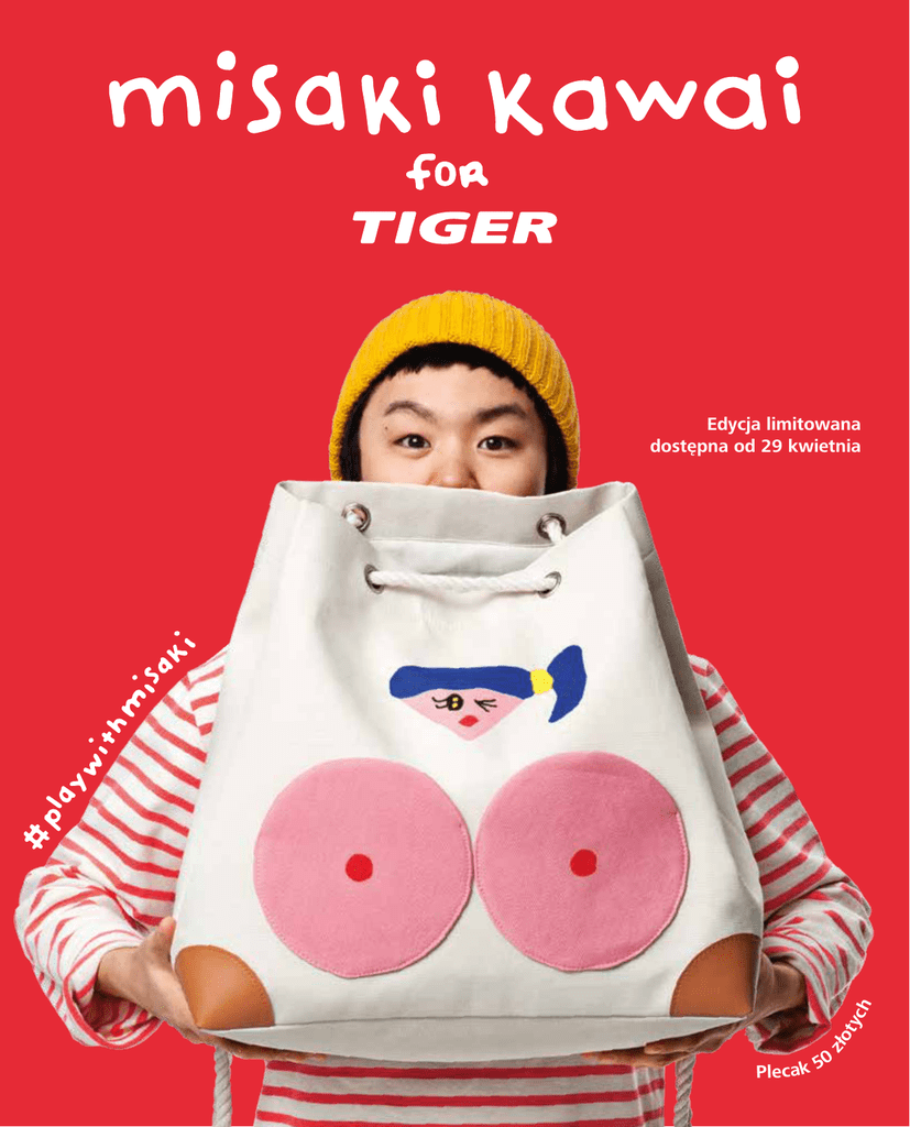 zł ot yc h Edycja limitowana dostępna od 29 kwietnia Pl e c a k 5 0 “Mogę dzielić się fajnymi rz bo dzięki Tigerowi są bard 1 3 4 2 9 7 8 11 1. Rękawica kuchenna z lisem, 10 zł 2. Gra memory 25 zł 3. Poducha-banan 30 zł 4. Poduszkowy biust 30 zł 5. Poduszka z kostką 30 zł 6. Skakanka z drewnianymi uchwytami 20 zł 7. Mata do jogi 100 zł 8. Torba 10 zł 9. Klocki układanka z drewna 30 zł 10. Etui na telefon 5/5s 20 zł 11. Autka z drewna 20 zł 12. Plecak dziecięcy 35 zł 13. Karty do gry w pudełku 10 zł Liczba produktów ograniczona – więc trzeba się spieszyć! zeczami z wieloma ludźmi, dziej dostępne.” 6 5 4 10 12 13 Misaki Kawai Tiger i Misaki Poznajcie Misaki Kawai, japońską artystkę pracującą w Japonii i Nowym Jorku. Swoje rozpoznawalne postaci przede wszystkim maluje, ale także rzeźbi i tworzy instalacje wykorzystując papier-mâché, tekstylia, książki, zdjęcia, wideo, dźwięk, folię i ubrania. Jej sztuka jest nieco ekscentryczna, zabawna, z poczuciem humoru, pełna odniesień do amerykańskiej i japońskiej popkultury i sztuki komiksowej. Misaki Kawai wystawiała na całym świecie – od MoMA PS1 w Nowym Jorku do Watari Muzeum Sztuki Nowoczesnej w Tokio. Sztuka w Tigerze Tiger juz wiele razy współpracował z artystami, projektantami i muzykami, by umożliwić ludziom dostęp do sztuki, która może otwierać oczy i pobudzać wyobraźnię. Teraz, po raz pierwszy, artysta stworzył własne uniwersum tylko dla Tigera. Przez ostatnie 12 miesięcy Misaki Kawai blisko współpracowała z zespołem naszych projektantów, by stworzyć pierwszą artystyczną kolekcję Tigera. I przynieść nam do domów – ze szczęśliwymi bananami i apetycznymi truskawkami – uśmiech. Misaki Kawai z wizytą w dziale designu w kopenhaskim Tigerze. Możliwe błędy w druku. Ceny na ulotce mogą się różnić od cen w sklepach. Towar dostępny w sklepach aż do wyczerpania zapasów. © Tiger 2016. Tiger chce jak największej liczbie ludzi dać szansę poznania zabawnej sztuki Misaki Kawai, jej pobudzającej kreatywności i pozytywnej energii. Dlatego zaprosiliśmy Misaki, by dała upust swej artystycznej energii w nowy sposób. “Współpraca z Tigerem pozwoliła mi podzielić się zabawnymi doświadczeniami z wieloma ludźmi” mówi Misaki Kawai.