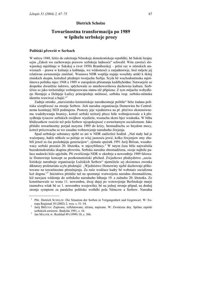 Towaršnostna transformacija po 1989 w špihelu - Serbski