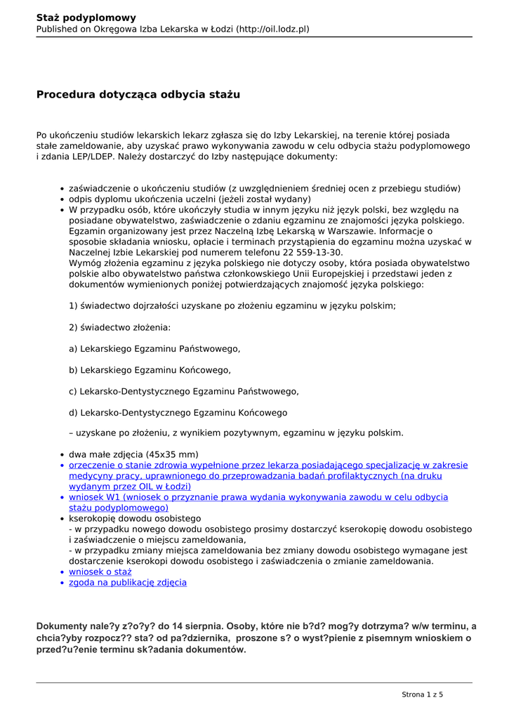 Staż podyplomowy - Okręgowa Izba Lekarska w Łodzi