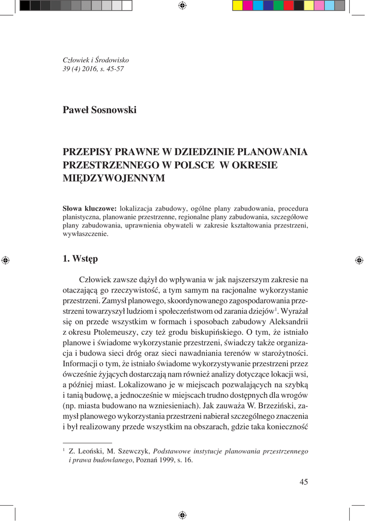 Przepisy prawne w dziedzinie planowania przestrzennego w Polsce... Człowiek i Środowisko 39 (4) 2016, s. 45-57 Paweł Sosnowski PRZEPISY PRAWNE W DZIEDZINIE PLANOWANIA PRZESTRZENNEGO W POLSCE W OKRESIE MIĘDZYWOJENNYM Słowa kluczowe: lokalizacja zabudowy, ogólne plany zabudowania, procedura planistyczna, planowanie przestrzenne, regionalne plany zabudowania, szczegółowe plany zabudowania, uprawnienia obywateli w zakresie kształtowania przestrzeni, wywłaszczenie. 1. Wstęp Człowiek zawsze dążył do wpływania w jak najszerszym zakresie na otaczającą go rzeczywistość, a tym samym na racjonalne wykorzystanie przestrzeni. Zamysł planowego, skoordynowanego zagospodarowania przestrzeni towarzyszył ludziom i społeczeństwom od zarania dziejów1. Wyrażał się on przede wszystkim w formach i sposobach zabudowy Aleksandrii z okresu Ptolemeuszy, czy też grodu biskupińskiego. O tym, że istniało planowe i świadome wykorzystanie przestrzeni, świadczy także organizacja i budowa sieci dróg oraz sieci nawadniania terenów w starożytności. Informacji o tym, że istniało świadome wykorzystywanie przestrzeni przez ówcześnie żyjących dostarczają nam również analizy dotyczące lokacji wsi, a później miast. Lokalizowano je w miejscach pozwalających na szybką i tanią budowę, a jednocześnie w miejscach trudno dostępnych dla wrogów (np. miasta budowano na wzniesieniach). Jak zauważa W. Brzeziński, zamysł planowego wykorzystania przestrzeni nabierał szczególnego znaczenia i był realizowany przede wszystkim na obszarach, gdzie taka konieczność Z. Leoński, M. Szewczyk, Podstawowe instytucje planowania przestrzennego i prawa budowlanego, Poznań 1999, s. 16. 1 45 Paweł Sosnowski była podyktowana albo warunkami geograficznymi i klimatycznymi, albo względami obronności2. Lokalizowanie zabudowy w przestrzeni odbywało się na podstawie jednostronnych rozstrzygnięć a nie aktów prawnych znanych nam dzisiaj, tj. ustaw i rozporządzeń. Uregulowanie tych kwestii w drodze aktów powszechnie obowiązujących nastąpiło w Europie jako odpowiedź na zmieniające się uwarunkowania społeczne. Zmiany te miały istotny wpływ na regulacje prawne w zakresie planowania przestrzennego w Polsce okresu międzywojennego. Celem niniejszego artykułu jest przybliżenie czytelnikom regulacji prawnych w zakresie planowania przestrzennego w Polsce okresu międzywojennego, a także rozwoju tych regulacji i ich wpływu na uprawnienia obywateli w zakresie kształtowania przestrzeni. W artykule ukazano również regulacje europejskie (francuskie i niemieckie), jak również uwarunkowania wpływające na polskie regulacje prawne w zakresie przestrzeni. 2. Kształtowanie się europejskiego prawa dotyczącego przestrzeni Feudalny porządek społeczny z dominującą pozycją władcy, któremu służyło prawo kształtowania przestrzeni, wynikające z prawa zwierzchniej własności ziemi3, skutkowało tym, iż tylko on mógł decydować o sposobach wykorzystania przestrzeni poprzez wydawanie zakazów lub nakazów wiążących przede wszystkim jego poddanych, a tym samym w nieskrępowany sposób mógł wpływać na kształt otoczenia (przestrzeni). Poddani nie mieli możliwości wpływu na rozstrzygnięcia podejmowane przez feudała. Tak funkcjonujący sposób kształtowania przestrzeni uległ zmianie dopiero w okresie liberalizmu, w którym nastąpiło zniesienie poddaństwa. Obywatel stał się podmiotem praw i obowiązków i przestał on być wyłącznie przedmiotem działań monarchy i jego urzędników. Obywatelom przyznano podmiotowe prawa publiczne spośród których do najważniejszych należała tzw. wolność budowlana. Została ona wyrażona po raz pierwszy w pruskiej ustawie krajowej z dnia 1 czerwca 1794 r. Allgemeinem Landrechte für die preußischen Staaten, zwanej Landrechtem Pruskim. Ustawa ta głosiła, że Plan zagospodarowania przestrzennego. Studium z zakresu nauki administracji i prawa administracyjnego, Warszawa 1961, s. 53, tenże: Podstawy prawne planowania gospodarczego i przestrzennego, Warszawa 1948, s. 45. 3 J. Bardach, Historia państwa i prawa Polski, t. 1. Do połowy XV wieku, Warszawa 1964, s. 100-101. 2 46 Przepisy prawne w dziedzinie planowania przestrzennego w Polsce... każdy właściciel gruntu jest uprawniony do jego zabudowy, bądź do dokonywania przebudowy wcześniej wzniesionych budynków. Ustawa krajowa z 1794 r. wprowadziła i nałożyła na podmioty, które zamierzały podjąć budowę, dwa obowiązki, tj. obowiązek zawiadomienia o zamiarze przystąpienia do budowy oraz obowiązek uzgodnienia projektu budowlanego. Liberalizacja obrotu gruntami, a także przyznanie właścicielom możliwości swobodnego zagospodarowania gruntu, spowodowało ograniczenie możliwości aktywnego oddziaływania przez władzę publiczną na przestrzeń, a w szczególności na jej zagospodarowanie. Było to bardzo niekorzystne, ponieważ utraciła ona możliwość wpływania na rozwój terenów budowlanych, a także na sposób ich zabudowy. Natomiast z punktu widzenia obywateli sytuacja taka była jak najbardziej korzystna, gdyż uzyskali oni możliwość realizacji na swoim gruncie dowolnych przedsięwzięć – zgodnych z własnymi oczekiwaniami. Dostrzegając tą niekorzystną sytuację, przejawiającą się brakiem możliwości aktywnego oddziaływania na przestrzeń, władza publiczna starała się ją zmienić w drodze regulacji prawnych. Pierwszą próbą było wprowadzenie tzw. generalnych klauzul policyjnych. Zawierały one upoważnienia do ingerencji władzy publicznej w sferę publicznych i prywatnych praw podmiotowych na wypadek zaistnienia sytuacji, w której podmioty korzystające z tych praw swoim zachowaniem mogłyby spowodować lub powodowałyby stan zagrożenia dla normalnego toku życia zbiorowego, a przede wszystkim dla życia, zdrowia, mienia i porządku publicznego. Klauzule te upoważniały władzę publiczną do ingerencji w prawo własnoś