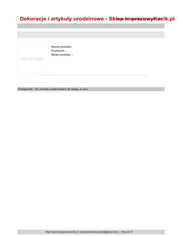 Utworzono: niedziela, 22 styczeń 2017 Dekoracje i artykuły urodzinowe - Sklep ImprezowyKacik.pl Nazwa produktu: Producent: Model produktu: - No image Dostępność: Ten produkt został dodany do sklepu w dniu http://www.imprezowykacik.pl | [email protected] | | Strona 1/1