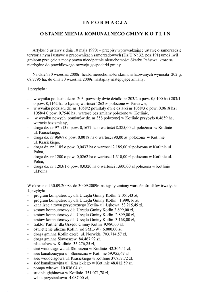 informacjao stanie mienia komunalnego gminy kotlin - BIP