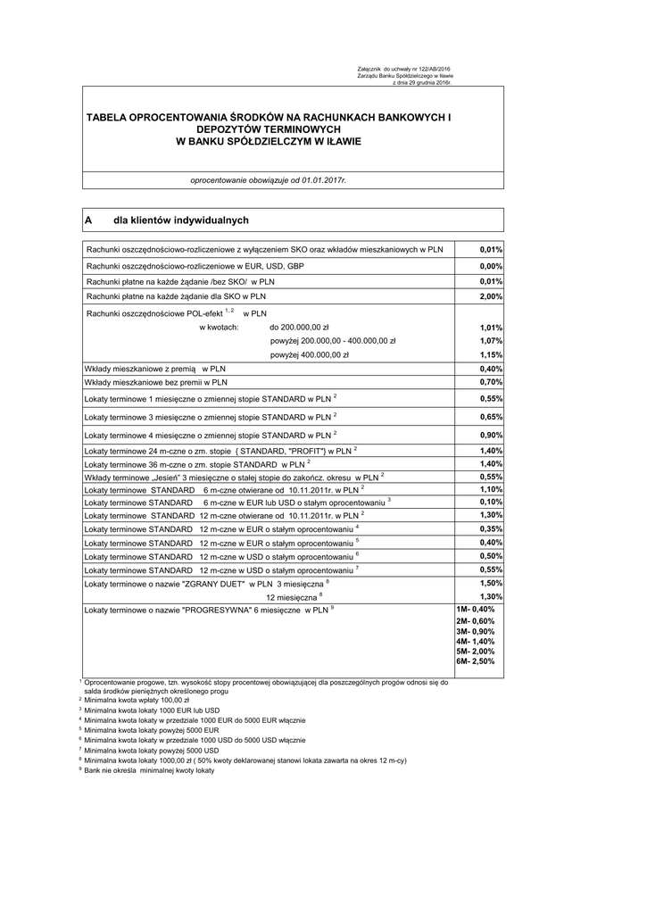 TABELA OPROCENTOWANIA ŚRODKÓW NA RACHUNKACH