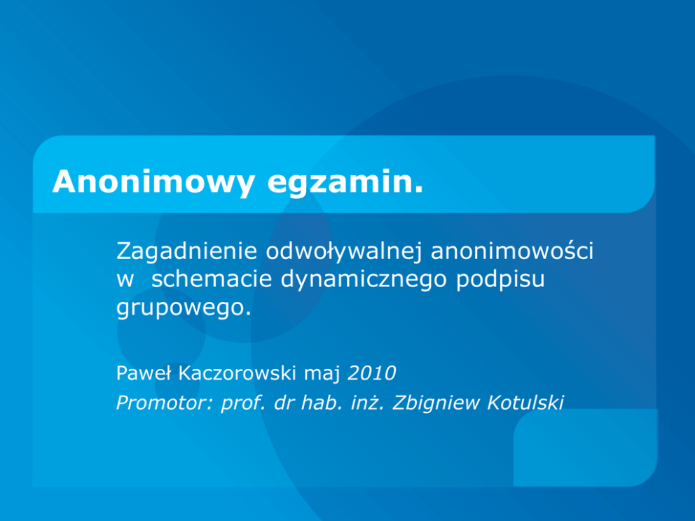 Promotor: prof. dr hab. inż. Zbigniew Kotulski