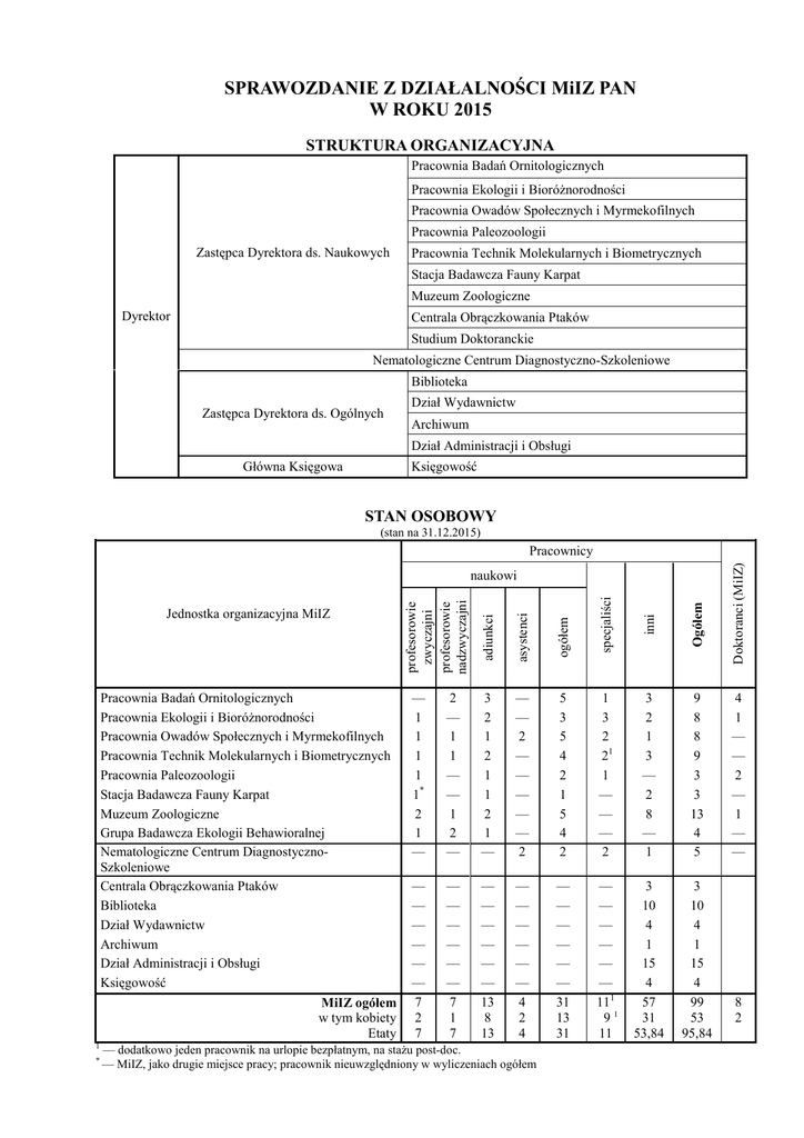 sprawozdanie z działalności - Muzeum i Instytut Zoologii PAN
