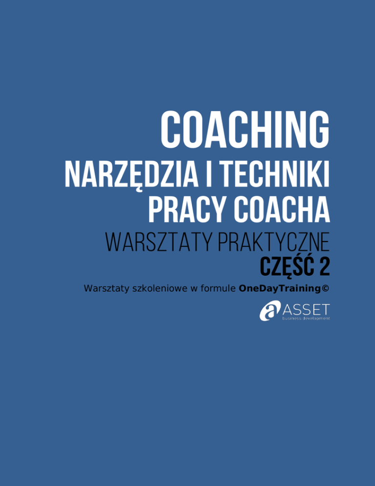 Warsztaty szkoleniowe w formule OneDayTraining© ----------------------------------------------------------------------------------------------------------------------------------------Specjalistyczne szkolenia i konsultacje biznesowe ASSET Business Development Sp. z o.o. Warsaw Financial Center, ul. Emilii Plater 53, 00-113 Warszawa tel: (+48 22) 101 39 74 , [email protected], www.asset.pl Warsztaty szkoleniowe w formule OneDayTraining© W Polsce odbywa się wiele spotkań, dyskusji i warsztatów poświęcanych coachingowi, ale wciąż mało na nich praktycznej wiedzy metodycznej i profesjonalnego transferu wiedzy, umiejętności i narzędzi pracy dla osób zajmujących się coachingiem. Dlatego właśnie powstało to szkolenie - do przekazania konkretnych i skutecznych narzędzi pracy, bez filozofii, ideologii, psychologii i zbędnej magii. Szkolenie "Narzędzia i techniki pracy Coacha" powstało na podstawie praktycznych doświadczeń z prawie 15 lat coachingów, prowadzonych z managerami największych firm w Polsce i za granicą. OneDayTraining© - dynamiczna formuła szkolenia dla ludzi ceniących czas, skoncentrowana na szybkim przekazaniu kluczowej wiedzy i najważniejszych umiejętności. Materiały dydaktyczne/podręcznik dokumentujące przekazaną wiedzę Testy i analizy własnych możliwości Imienny certyfikat ukończenia szkolenia Ćwiczenia indywidualne i zespołowe Elementy coachingu, Mindmapping Dyskusje i burze mózgów, studia przypadków Czas trwania: 1 dzień Godzina: 09.30-16.00 Inwestycja zawiera: materiały szkoleniowe, przerwy kawowe, certyfikat Menadżer projektu: Anna Andruczyk, [email protected] ----------------------------------------------------------------------------------------------------------------------------------------Specjalistyczne szkolenia i konsultacje biznesowe ASSET Business Development Sp. z o.o. Warsaw Financial Center, ul. Emilii Plater 53, 00-113 Warszawa tel: (+48 22) 101 39 74 , [email protected], www.asset.pl WPROWADZENIE / PODSUMOWANIE CZ.1 Jak, dlaczego i właściwie po co powstał coaching? Kiedy należy, a kiedy nie można zastosować coachingu? Co w coachingu dzieje się dziś na świecie? Inspiracje i antyprzykłady Uzgadniamy definicje NARZĘDZIA BUDOWANIA RELACJI Kontrakty indywidualne Moja najlepsza oferta Czarno-biała lista zachowań Karta „Ściśle tajne” Pytania „zmiękczające” relację Werbalne sposoby słuchania Karta kontrolna partnerstwa NARZĘDZIA TWORZENIA WIZJI I WYZNACZANIA CELÓW Karta SMART Matryca projektowania celów Piramida poziomów logicznych Lista gdybania Linie czasu Koło rozwojowe Indywidualna misja Indywidualny plan rozwoju Ukryte pole NARZĘDZIA PRACY Z MOTYWACJĄ I WARTOŚCIAMI Karta przekonań i wartości Karta odkrywania motywacji Piramida motywacji Arkusz hierarchii wartości Działanie FLOW Arkusz wartości zawodowych Bezludna wyspa Adwokat diabła Najgorszy możliwy scenariusz PODSUMOWANIE / ZAKOŃCZENIE CZ.2 ----------------------------------------------------------------------------------------------------------------------------------------Specjalistyczne szkolenia i konsultacje biznesowe ASSET Business Development Sp. z o.o. Warsaw Financial Center, ul. Emilii Plater 53, 00-113 Warszawa tel: (+48 22) 101 39 74 , [email protected], www.asset.pl Dominik Frajberg. Charyzmatyczny trener, niezwykle skuteczny menadżer, inspirujący coach biznesowy. Uczestnicy szkoleń i spotkań opisują go jako: "...wyjątkowo kontaktowy, z ogromną wiedzą i doświadczeniem, ale też pełen humoru i dystansu do samego siebie..." Absolwent psychologii Uniwersytetu Jagiellońskiego. Psycholog biznesu, specjalista w dziedzinie motywacji, sprzedaży i marketingu. Od 10 lat zajmuje stanowiska kierownicze w zagranicznych i polskich firmach doradczych. Posiada ponad dziesięcioletnie doświadczenie w dziedzinie zarządzania personelem oraz zarządzania organizacją. Obecnie przygotowuje i realizuje międzynarodowe projekty z zakresu rozwoju zasobów ludzkich, organizacji i zarządzania. Jest członkiem rady programowej Europejskiego Stowarzyszenia Rozwoju Biznesu EBDA (European Business Development Association) oraz Instytutu Partnerstwa Publiczno Prywatnego IPPP. Autor ponad 200 programów szkoleń i publikacji, konsultant i Coach biznesowy. Obecnie zajmuje stanowisko: Prezes Zarządu Asset Business Development Sp. z o.o. (od 11 lat) Prezes Zarządu Instytutu Badań i Analiz Menadżerskich IBAM. (od 10 lat) Prezes Zarządu sieci kancelarii prawnych Avoué Polska Sp. z o.o. (od 3 lat) Posiada ponad 15 lat praktycznego doświadczenia zawodowego i prawie 400 osobiście realizowanych i nadzorowanych projektów doradczych, szkoleniowych i badawczych. AGORA AKZO – NOBEL NOBILES ALIOR BANK ALLIANZ AMBRA AMERSPORT ARAL POLSKA ASTER ATC CARGO AUCHAN POLSKA AXN BAKOMA BIOAGRA BNP PARIBAS BRITISH – AMERICAN TOBACCO POLSKA CABLE BULGARIA AD (BULGARIA) CADBURY POLAND CANAL+ POLSKA CARRIER CARLSBERG POLSKA CDM PEKAO SA CHANEL CITIBANK HANDLOWY CLOETTA (SWEDEN) COCA-COLA AMATIL (POLAND) CYFROWY POLSAT DEICHMANN DUKA POLSKA DIOR ENERGIS POLSKA FABRYKA NARZĘDZI FANAR FEDEX POLSKA GAWEX MEDIA GAZETAPRACA.PL GRUPA ATLAS HBO POLSKA HERBALIFE HERZ ARMATUREN INCO VERITAS ING COMMERCIAL FINANCE ING LEASE POLSKA NTERCHAMP CO. LTD INTERDRUK CORPORATION JAPAN TOBACCO INTERNATIONAL KOSMOPROF KOTLIN DYSTRYBUCJA KOWARY LOTOS PARTNER LEKKERLAND POLSKA MANROLAND MAZURKAS TRAVEL POLAND MEDIA SATURN MILLENIUM LEASING MILLENNIUM BANK NESPRESSO NESTLÉ WATERS POLSKA NOKIA OPEK OPTIMUM DISTRIBUTION ORANGE OTIS PHILIP MORRIS POLSKA PIOTR I PAWEL POLMOS WROCŁAW POLPHARMA POLSKIE SKŁADY BUDOWLANE POLYMUS R.J.REYNOLDS TOBACCO (POLAND) R.J.REYNOLDS TOBACCO (UKRAINE) RABEN LOGISTICS RAISIO FEED LTD (FINLAND) SCANIA POLSKA SCHIEDEL POLSKA SEGRAM POLSKA SEPHORA SODEXHO PASS SONY PICTURES STAR FOODS INTERNATIONAL STAREDIA SA/UKRAINE STRABAG TAC POLSKA TP INTERNET UBISOFT UNIDECO (UKRAINE) UNO FRESCO TRADEX UPC (UNITED PAN COMMUNICATION) WARNER WA